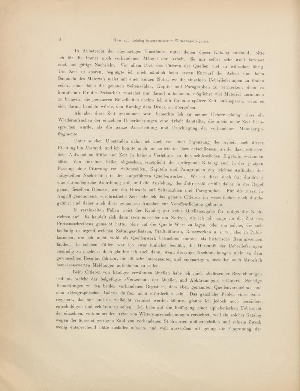 Katalog bemerkenswerter Witterungsereignisse : von den ältesten Zeiten bis zum Jahre 1800 / von R. Hennig