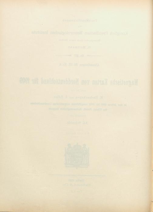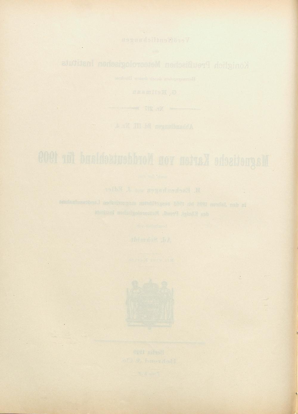 Magnetische Karten von Norddeutschland für 1909 : nach der von M. Eschenhagen und J. Edler in den Jahren 1898 bis 1903 ausgeführten magnetischen Landesaufnahme des Königl. Preuß. Meteorologischen Instituts / bearb. von Ad. Schmidt
