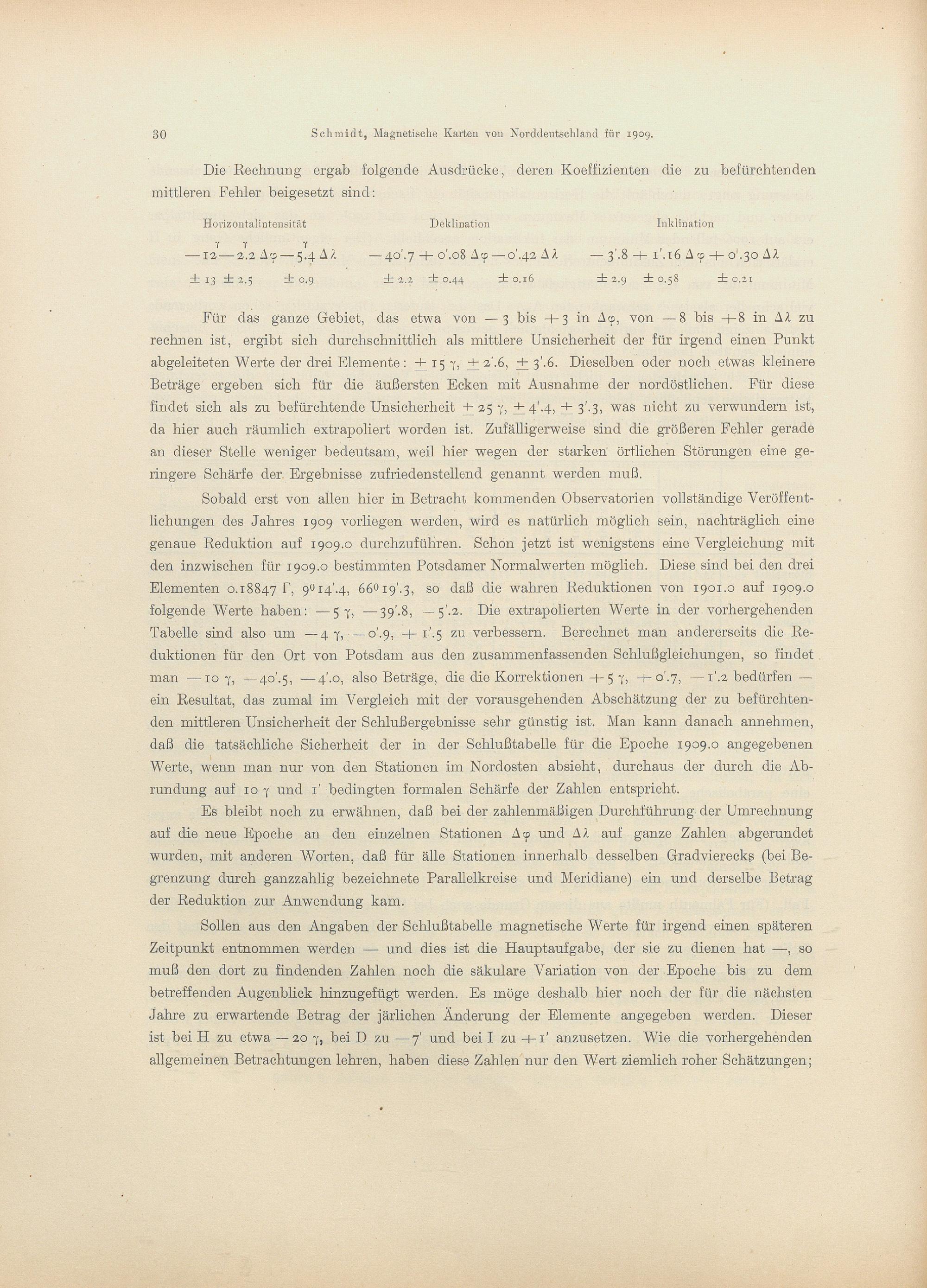 Magnetische Karten von Norddeutschland für 1909 : nach der von M. Eschenhagen und J. Edler in den Jahren 1898 bis 1903 ausgeführten magnetischen Landesaufnahme des Königl. Preuß. Meteorologischen Instituts / bearb. von Ad. Schmidt