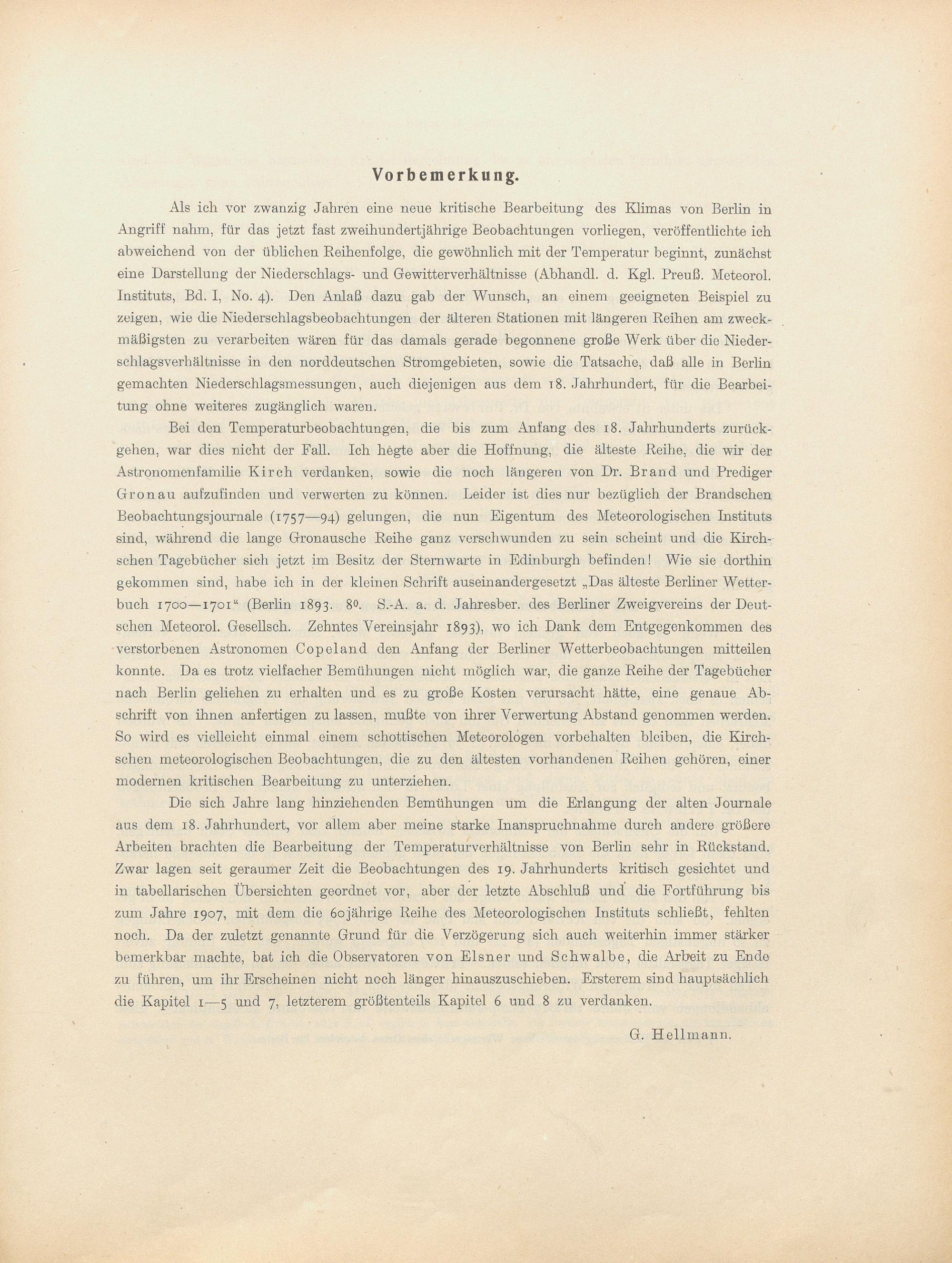 Das Klima von Berlin : Teil 2, Lufttemperatur / von G. Hellmann. Fortgeführt von G. v. Elsner und G. Schwalbe
