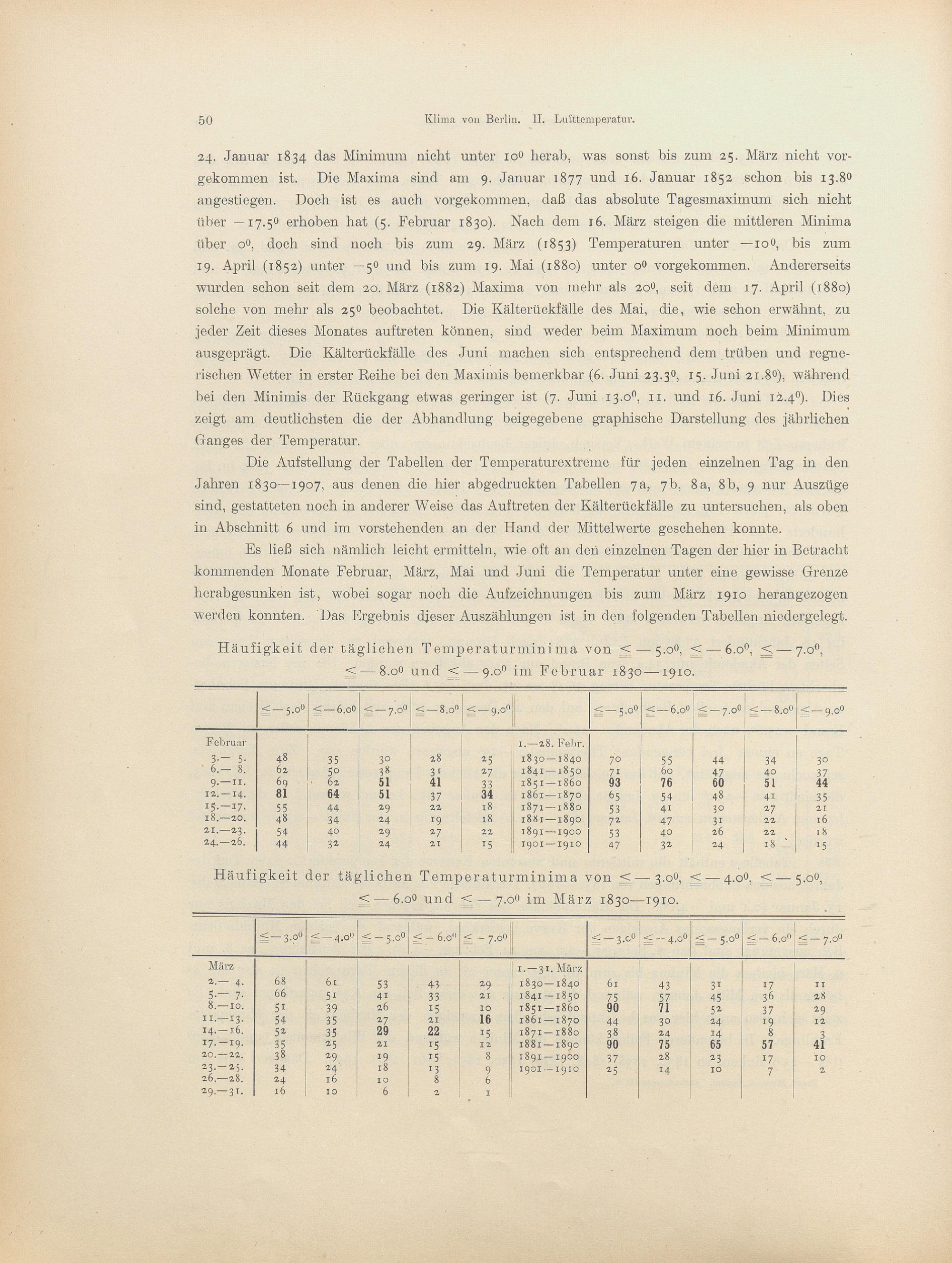 7. Wärme- und Kälteperioden in den Jahren 1848-1907