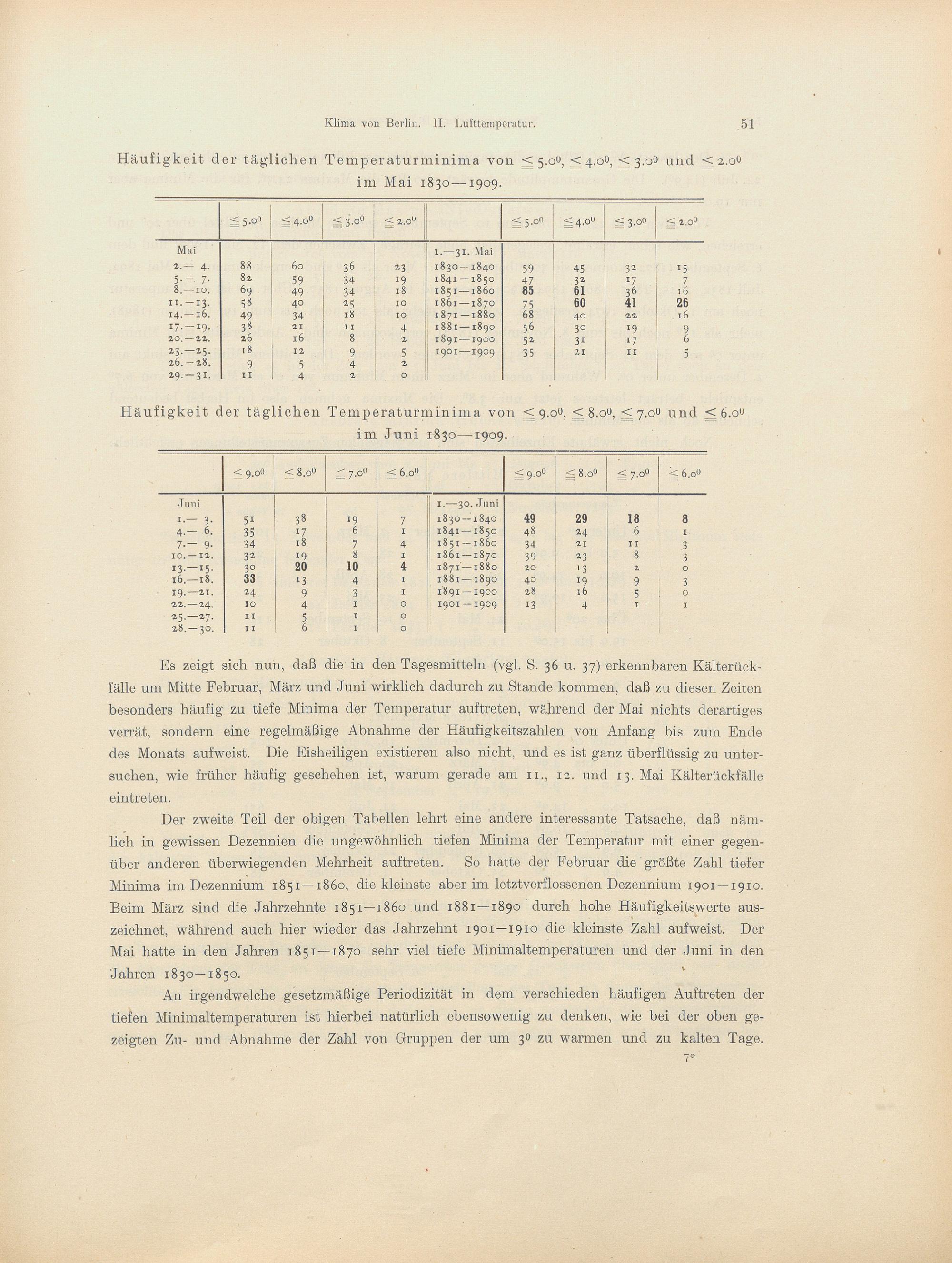 7. Wärme- und Kälteperioden in den Jahren 1848-1907