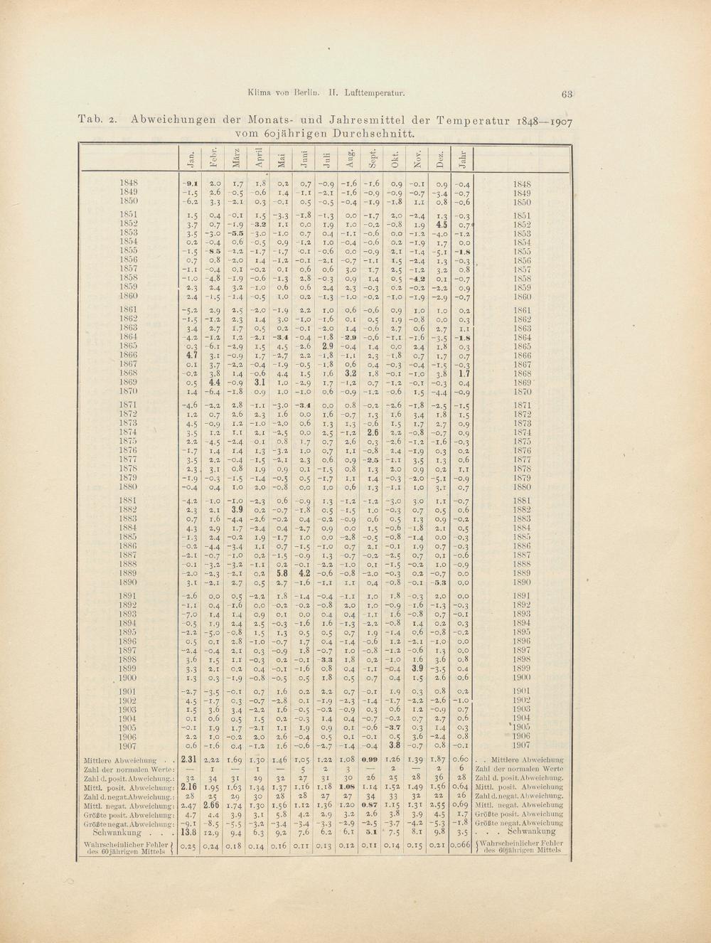 7. Wärme- und Kälteperioden in den Jahren 1848-1907