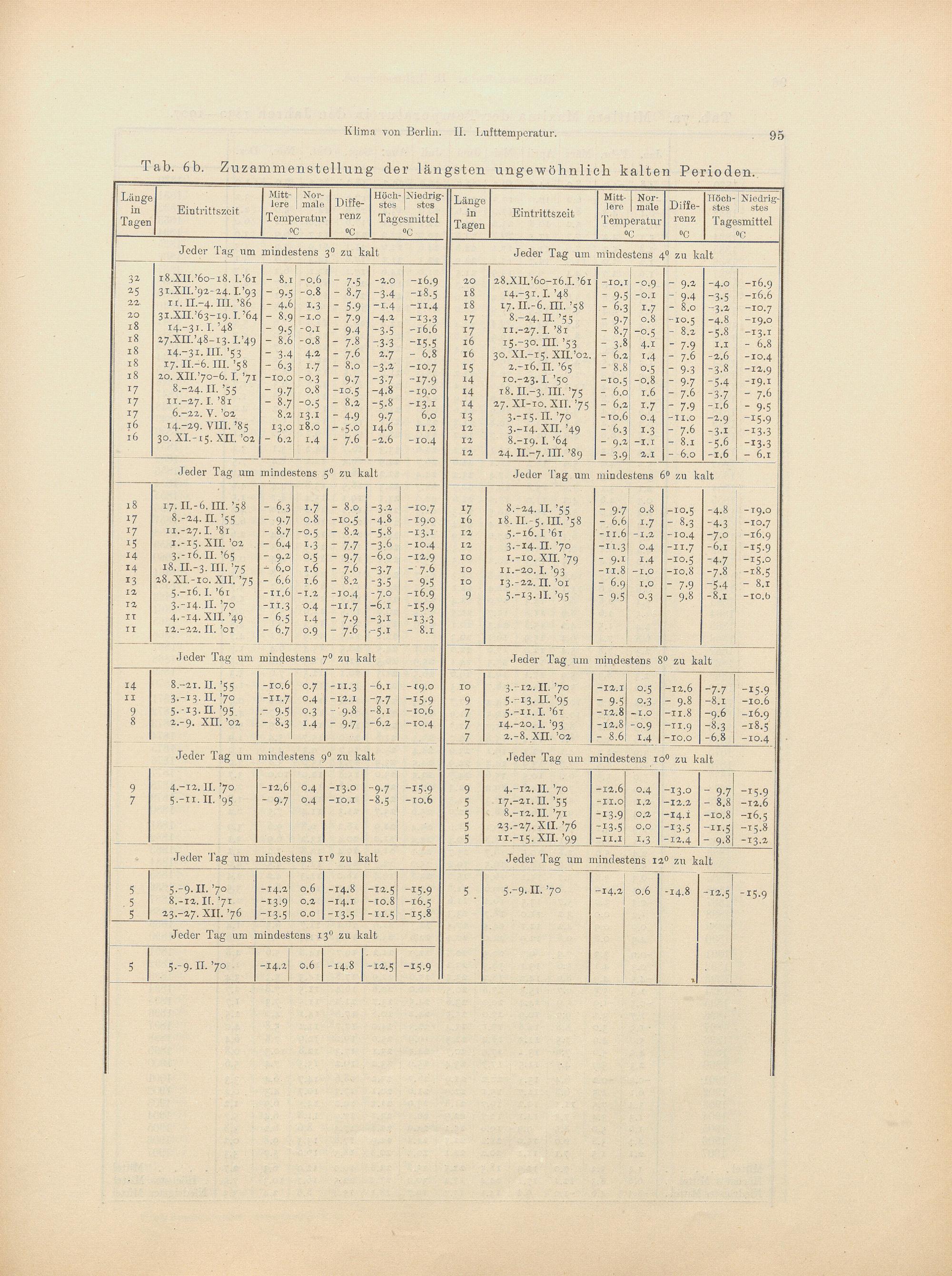 7. Wärme- und Kälteperioden in den Jahren 1848-1907