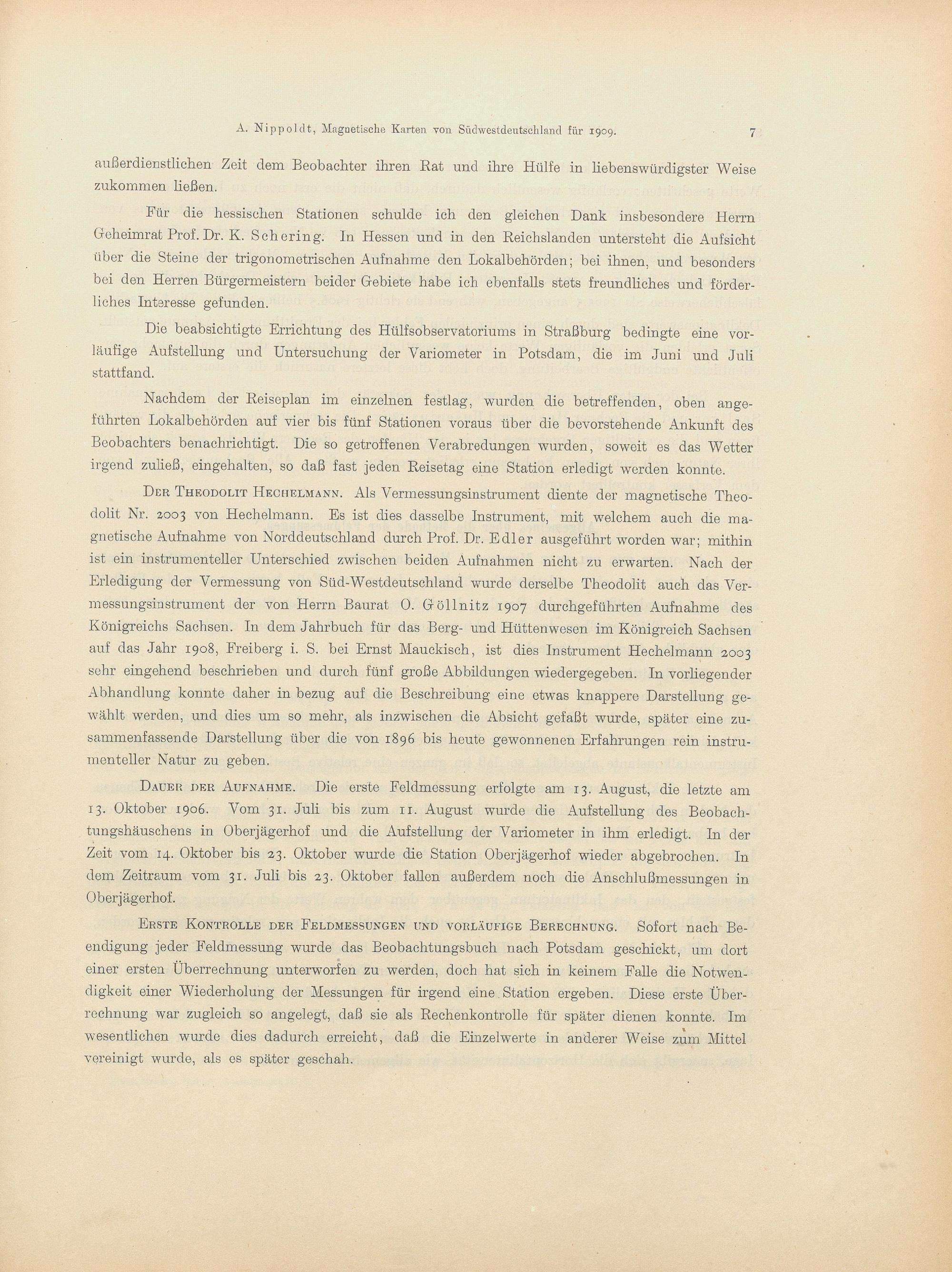 Magnetische Karten von Südwestdeutschland für 1909 : nach eigenen, im Anschluß an die preußische magnetische Landesaufnahme ausgeführten Messungen / bearb. von A. Nippoldt
