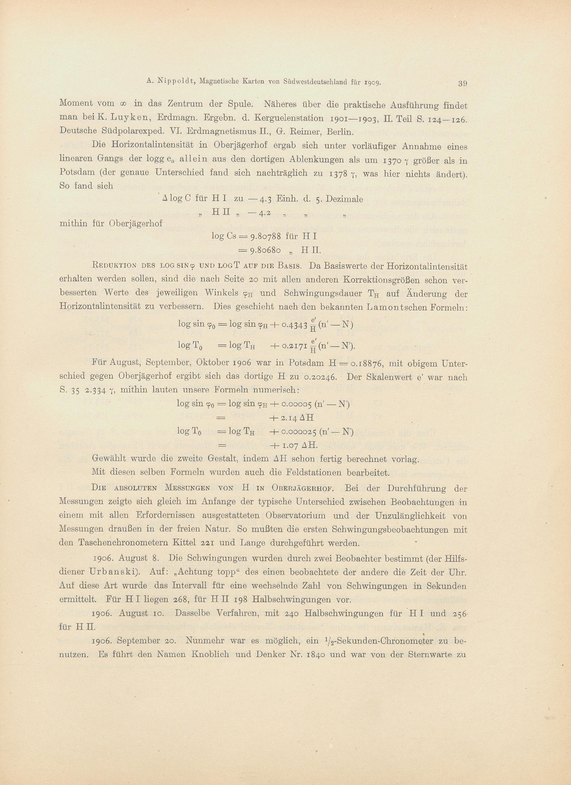 Magnetische Karten von Südwestdeutschland für 1909 : nach eigenen, im Anschluß an die preußische magnetische Landesaufnahme ausgeführten Messungen / bearb. von A. Nippoldt