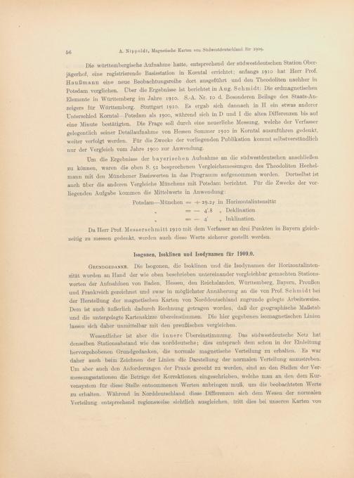 Magnetische Karten von Südwestdeutschland für 1909 : nach eigenen, im Anschluß an die preußische magnetische Landesaufnahme ausgeführten Messungen / bearb. von A. Nippoldt