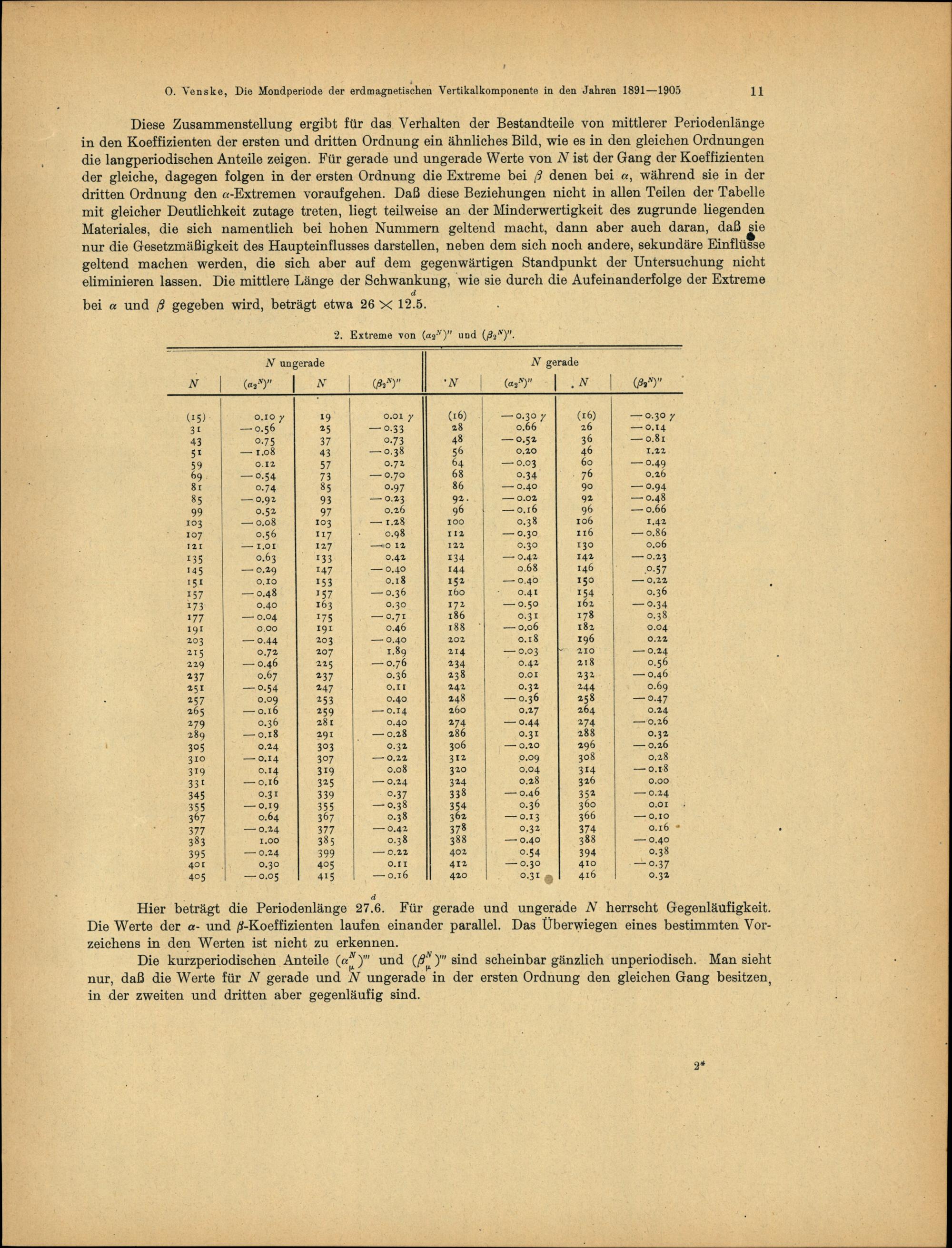 Die Mondperiode der erdmagnetischen Vertikalkomponente nach den Registrierungen des Potsdamer Magnetographen in den Jahren 1891 - 1905 / Oswald Venske