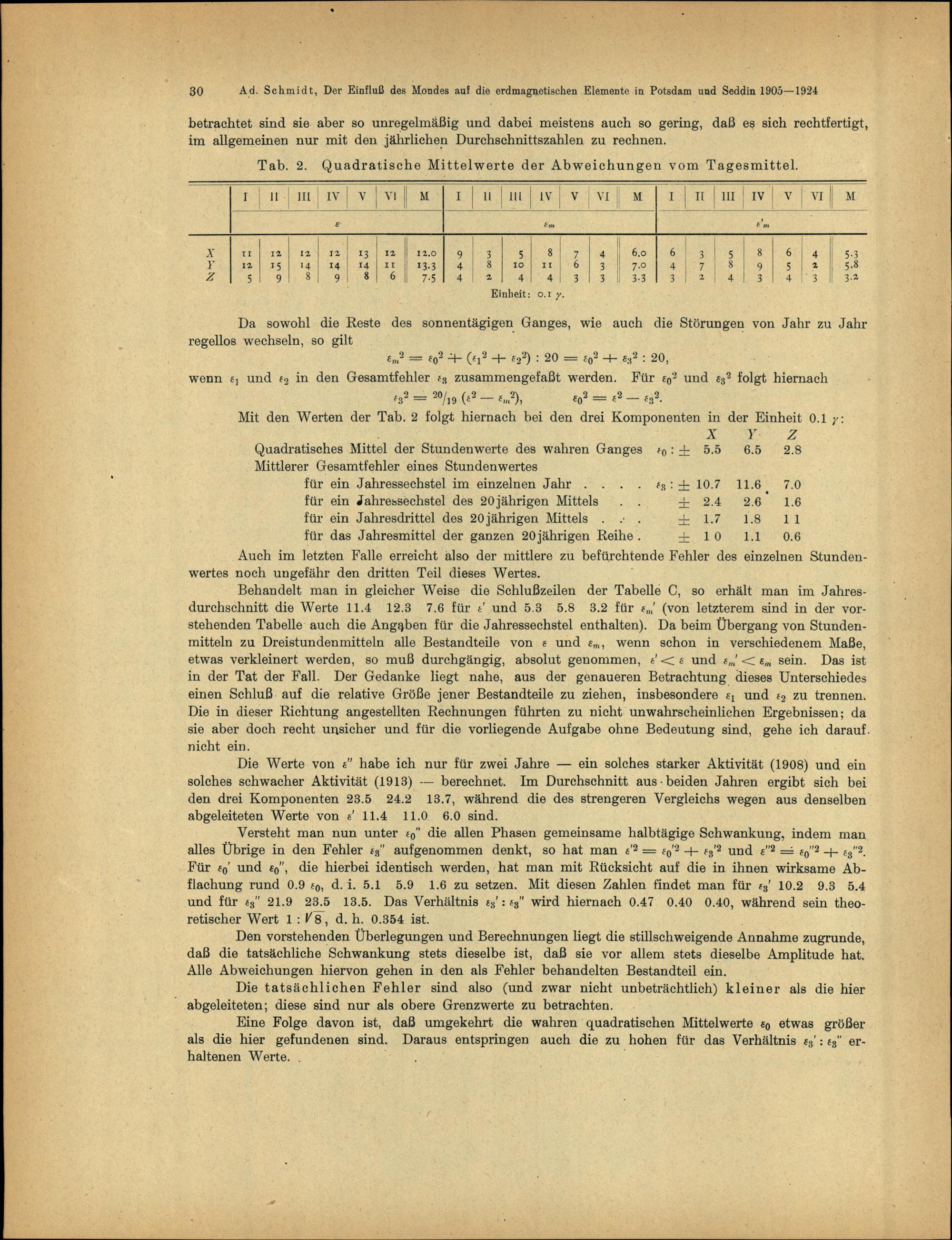Die Mondperiode der erdmagnetischen Vertikalkomponente nach den Registrierungen des Potsdamer Magnetographen in den Jahren 1891 - 1905 / Oswald Venske