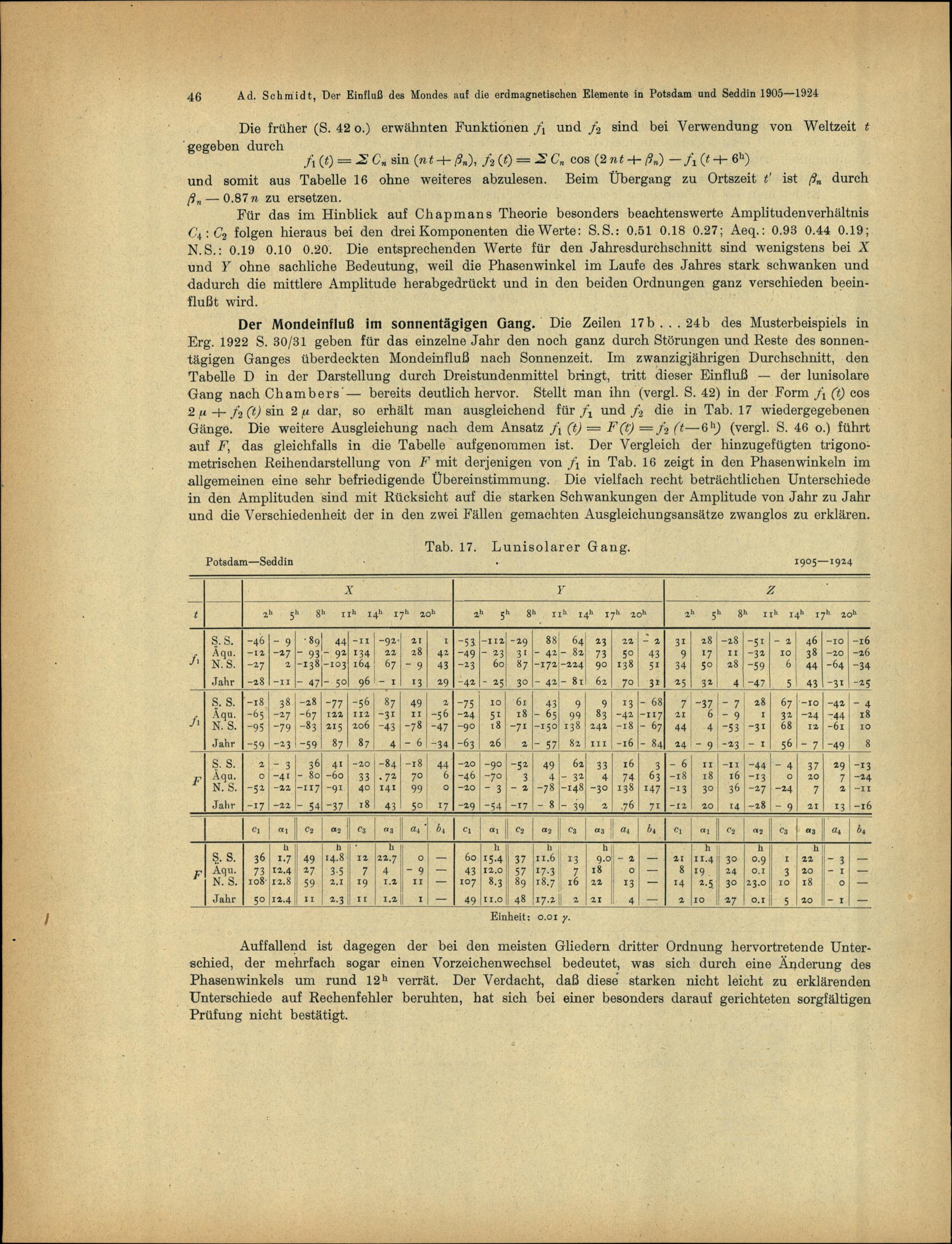Die Mondperiode der erdmagnetischen Vertikalkomponente nach den Registrierungen des Potsdamer Magnetographen in den Jahren 1891 - 1905 / Oswald Venske