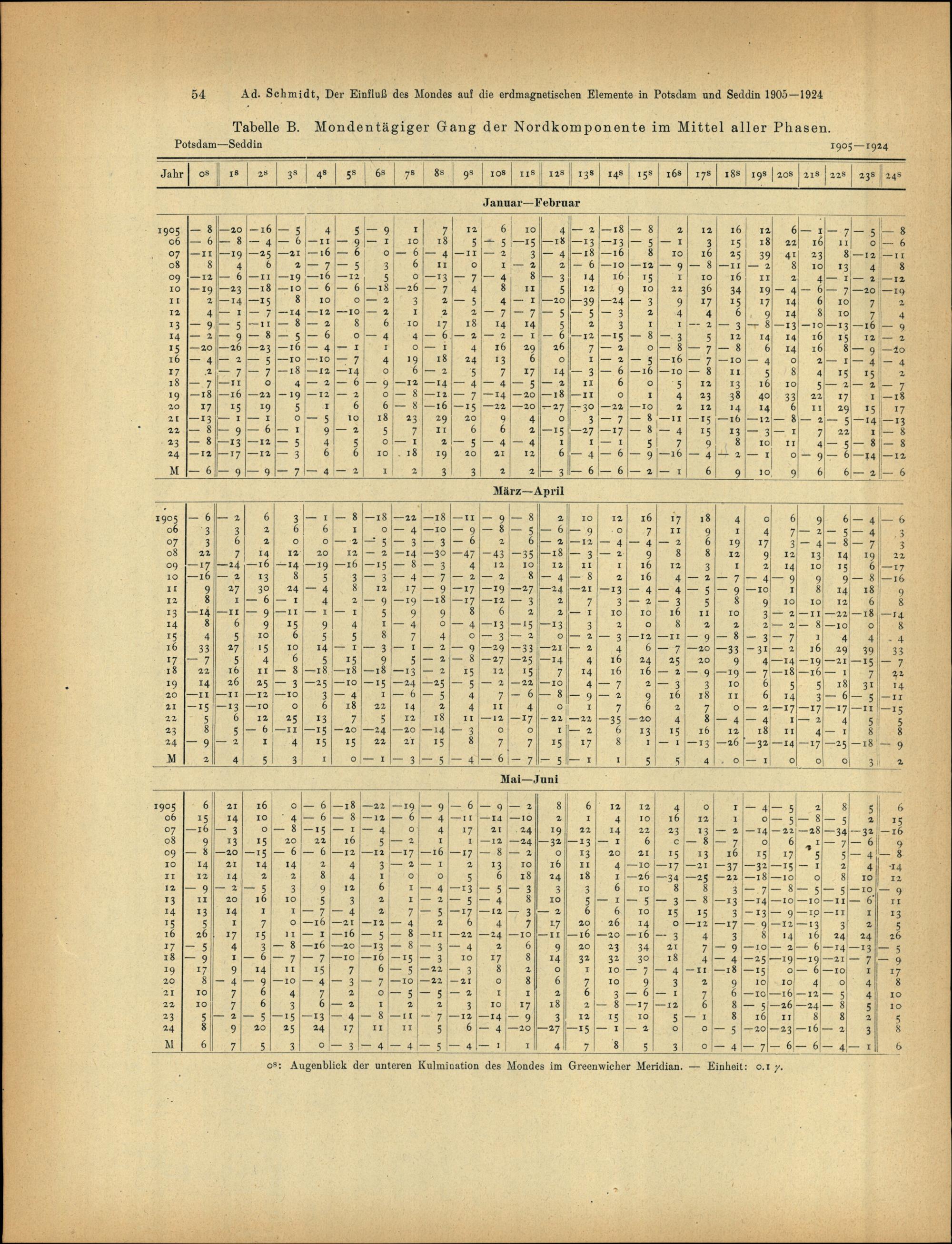Die Mondperiode der erdmagnetischen Vertikalkomponente nach den Registrierungen des Potsdamer Magnetographen in den Jahren 1891 - 1905 / Oswald Venske