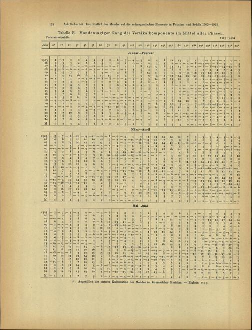 Die Mondperiode der erdmagnetischen Vertikalkomponente nach den Registrierungen des Potsdamer Magnetographen in den Jahren 1891 - 1905 / Oswald Venske