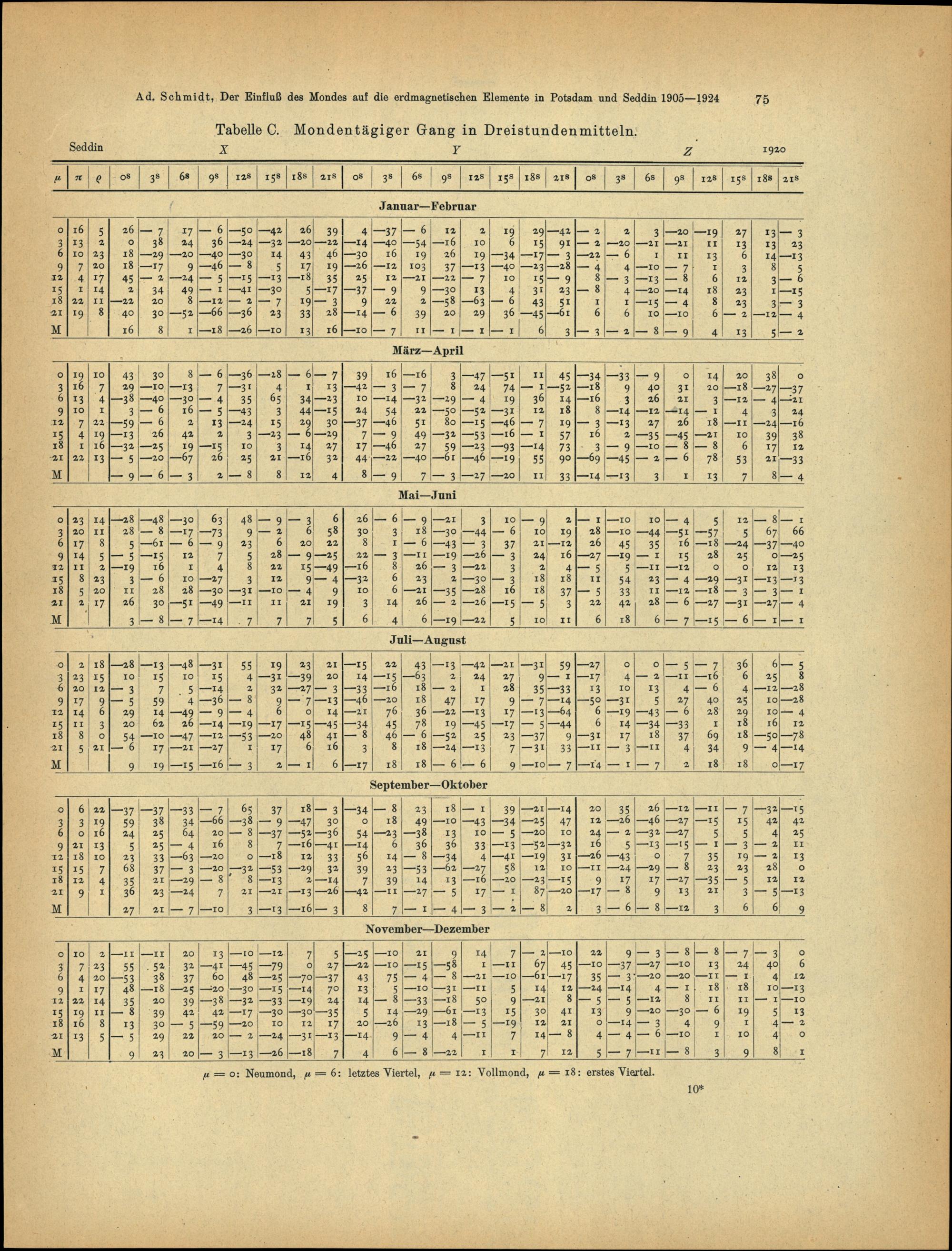 Die Mondperiode der erdmagnetischen Vertikalkomponente nach den Registrierungen des Potsdamer Magnetographen in den Jahren 1891 - 1905 / Oswald Venske