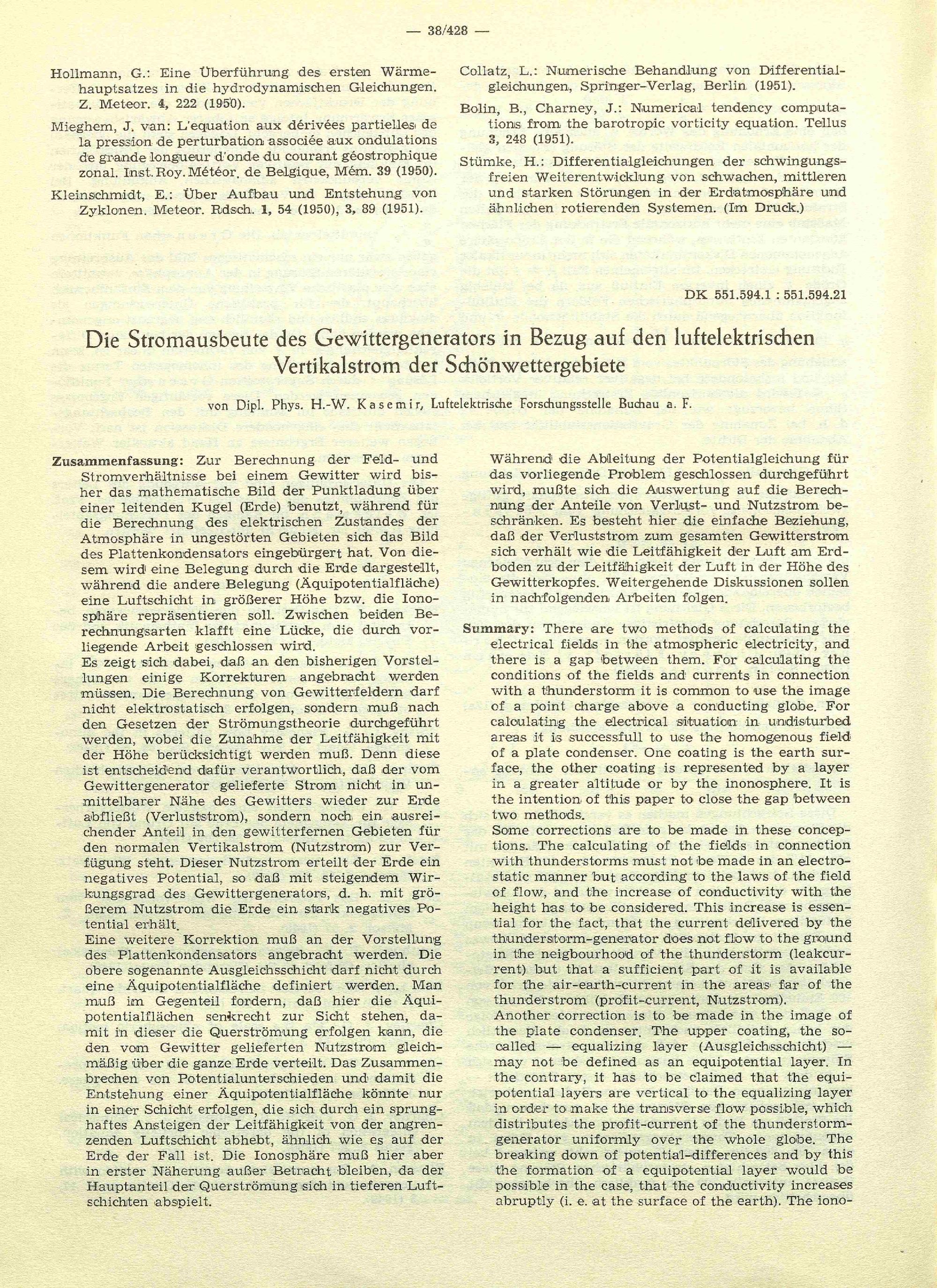 Weickmann-Heft : [Herrn Professor Dr. Ludwig Weickmann zum 70. Geburtstage am 15. August 1952 gewidmet von seinen Mitarbeitern, Schülern und Freunden] / Deutscher Wetterdienst in der US-Zone