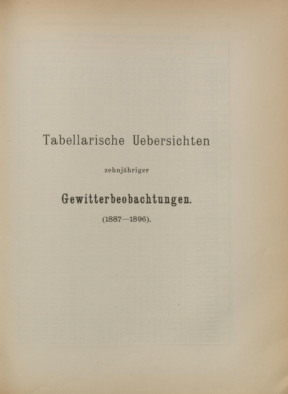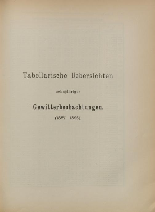 Tabellarische Übersichten zehnjähriger Gewitterbeobachtungen (1887-1896)