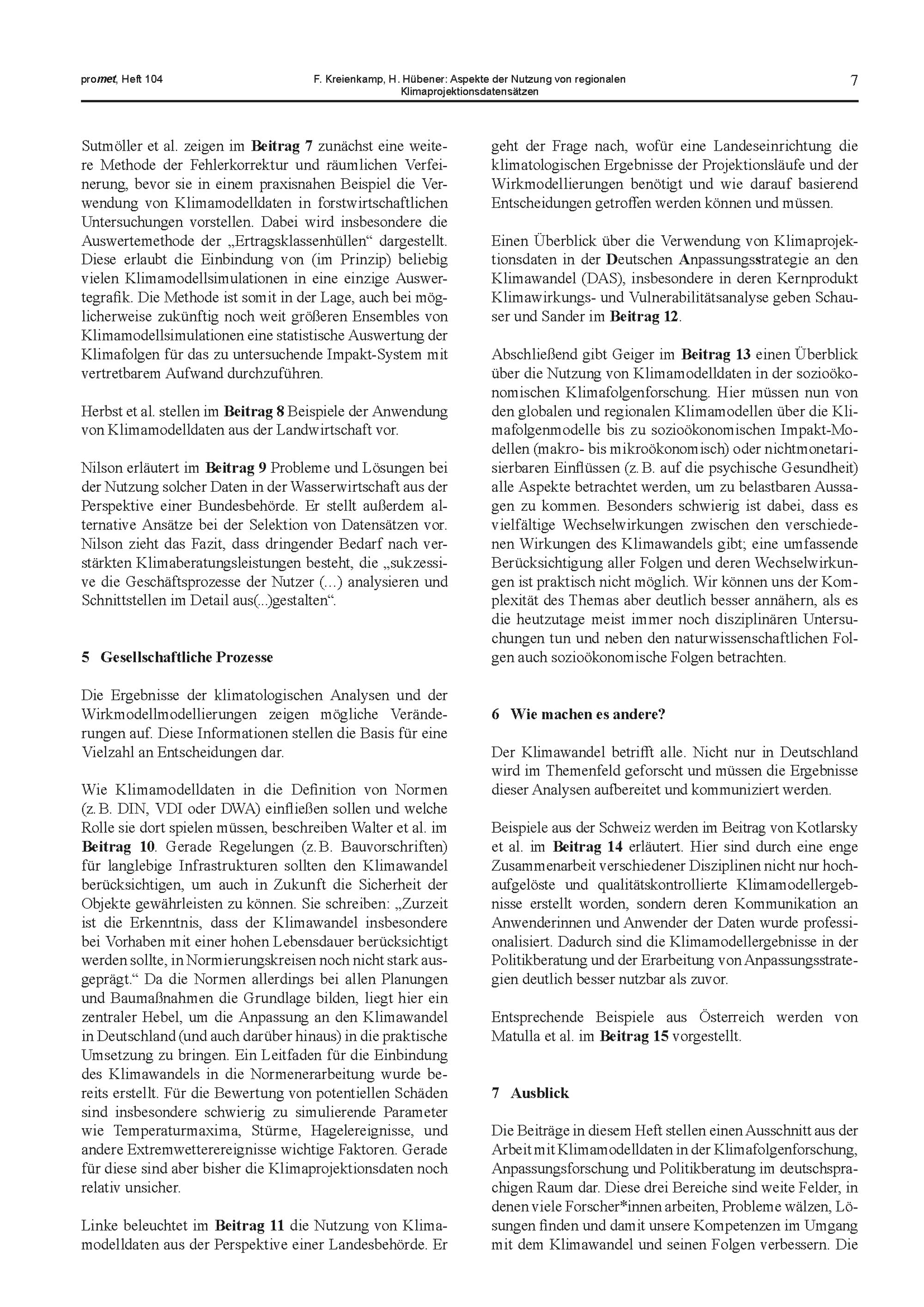 1. F. Kreienkamp, H. Hübener: Aspekte der Nutzung von regionalen Klimaprojektion...