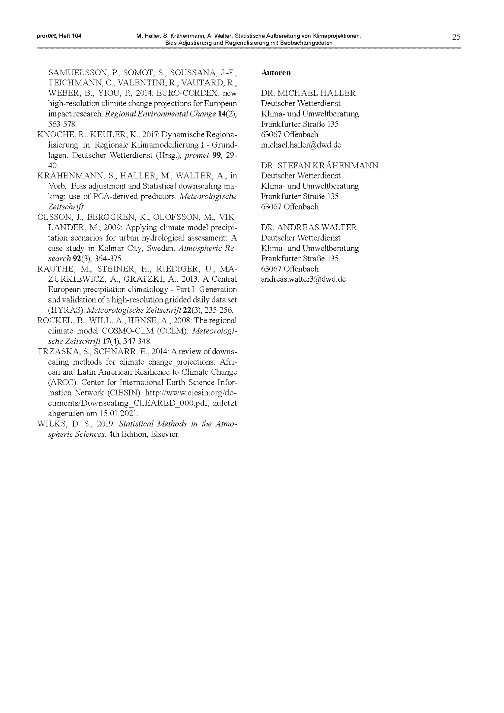 3. M. Haller, S. Krähenmann, A. Walter: Statistische Aufbereitung von Klimaprojektionen: Bias-Adjustierung und Regionalisierung mit Beobachtungsdaten