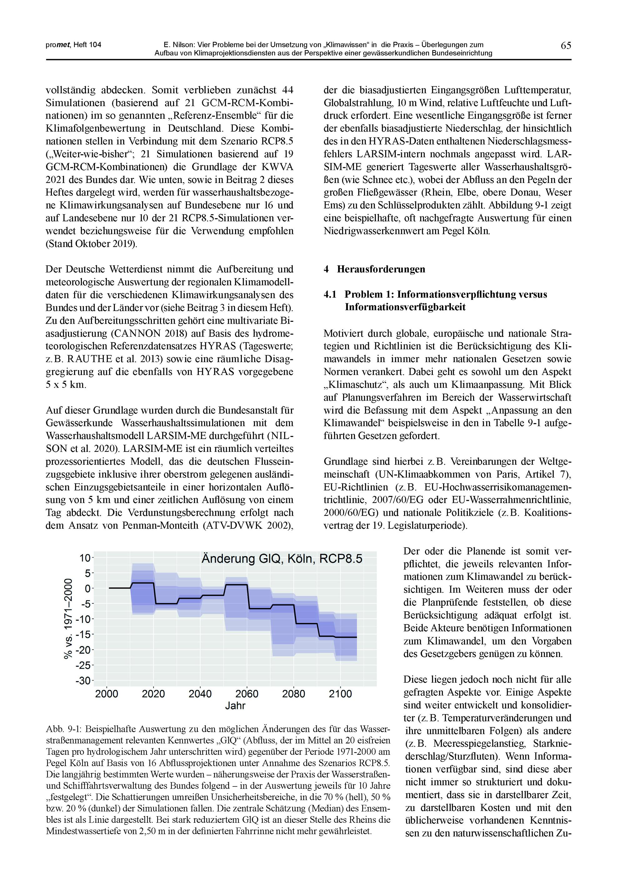 9. E. Nilson: Vier Probleme bei der Umsetzung von „Klimawissen“ in die Praxis – Überlegungen zum Aufbau von Klimaprojektionsdiensten aus der Perspektive einer gewässerkundlichen Bundeseinrichtung