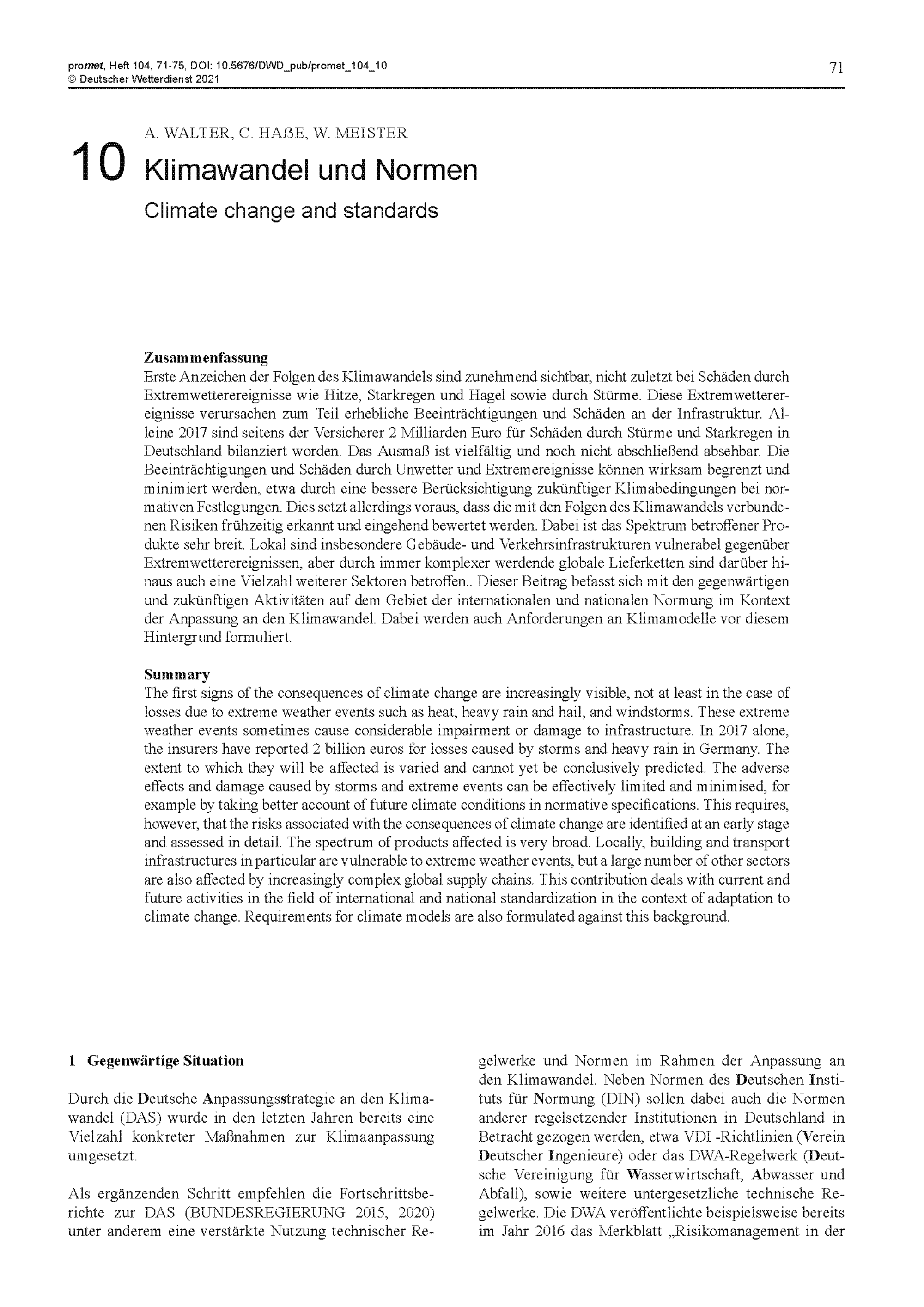 10. A. Walter, C. Haße, W. Meister: Klimawandel und Normen