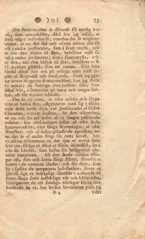 Svar på Kongl. Vetensk. Academiens För År 1764 Upgifna Fråga: Hvilka aero Svenska Climatets foermoner och olaegenheter, i anseende til allmaenna och enskildta husbållningen, i jaemfoe-foerelse emot andra Laenders?