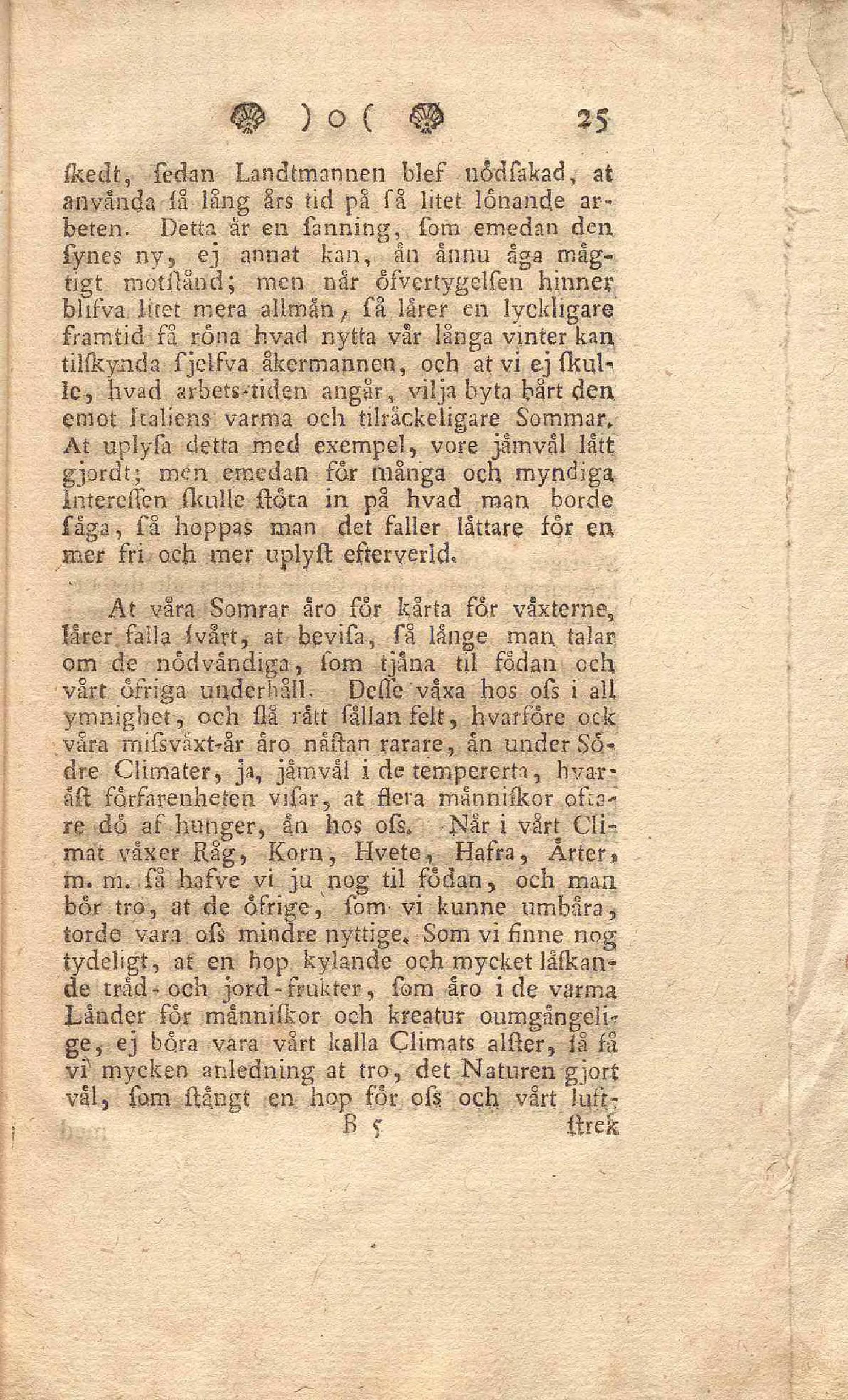 Svar på Kongl. Vetensk. Academiens För År 1764 Upgifna Fråga: Hvilka aero Svenska Climatets foermoner och olaegenheter, i anseende til allmaenna och enskildta husbållningen, i jaemfoe-foerelse emot andra Laenders?