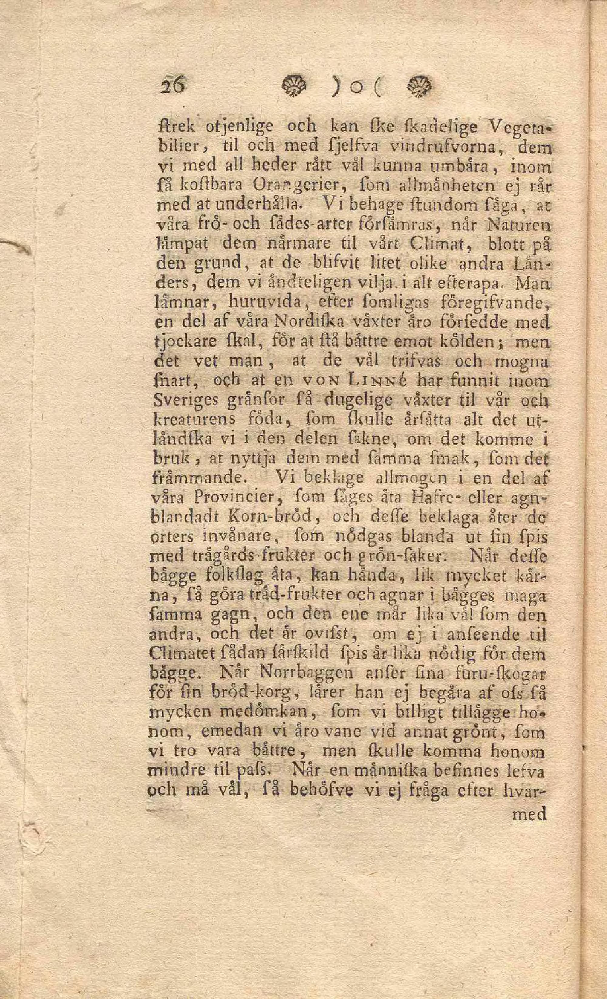 Svar på Kongl. Vetensk. Academiens För År 1764 Upgifna Fråga: Hvilka aero Svenska Climatets foermoner och olaegenheter, i anseende til allmaenna och enskildta husbållningen, i jaemfoe-foerelse emot andra Laenders?