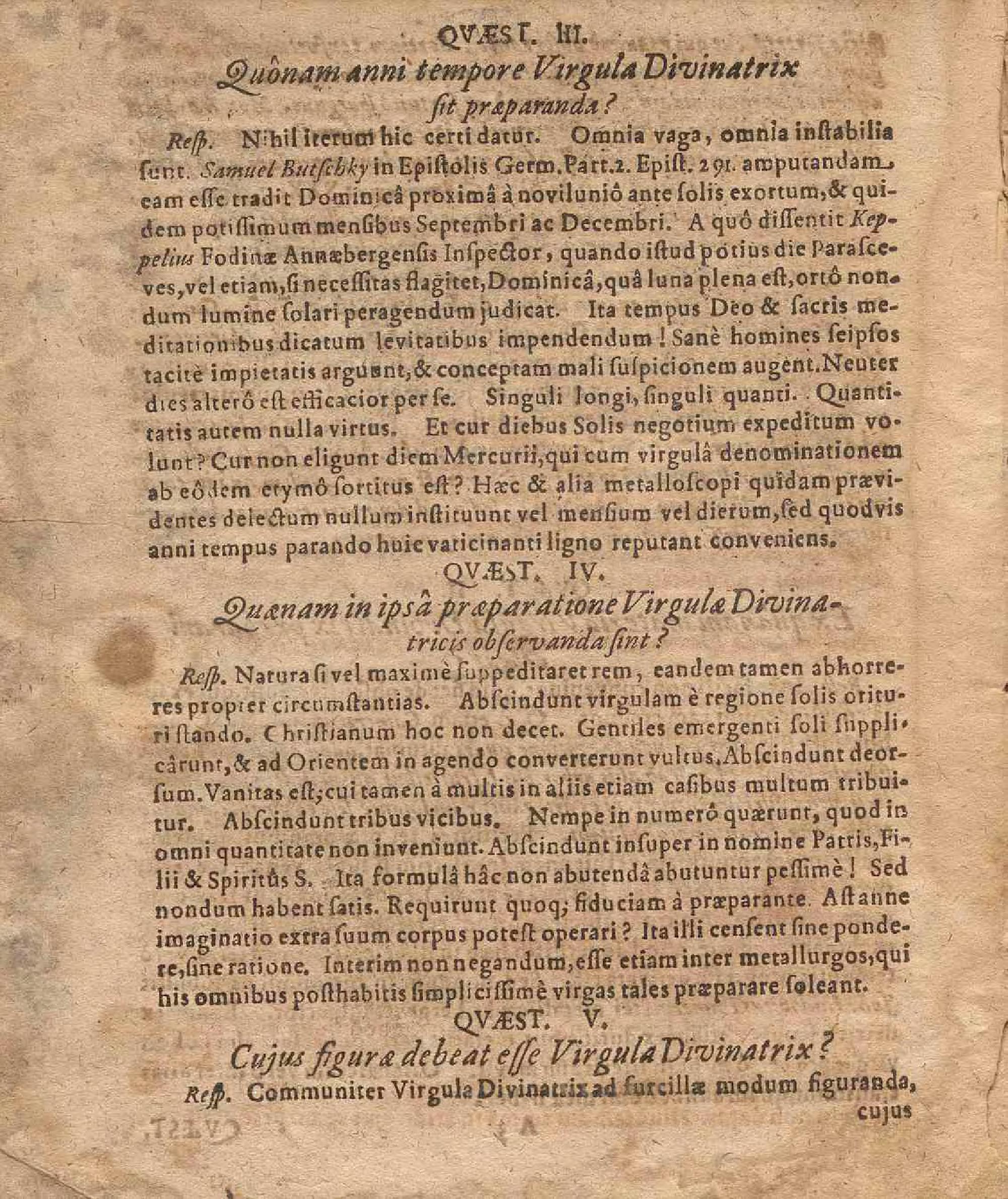 De Virgula Divinatrice / Quam Pro Loco In Amplissima Facultate Philosophica Wittebergensi Benevole sibi concesso, Publico Eruditorum Examini submittit Præses M. Theodorus Kirchmaier, Uffenhemio-Francus, Respondente Johanne Henrico Martio, Curiâ Varisco, Ad d. 9. Decembris, A.O.R. M.DC.LXIX. In Auditorio Majori, Hris antemerid