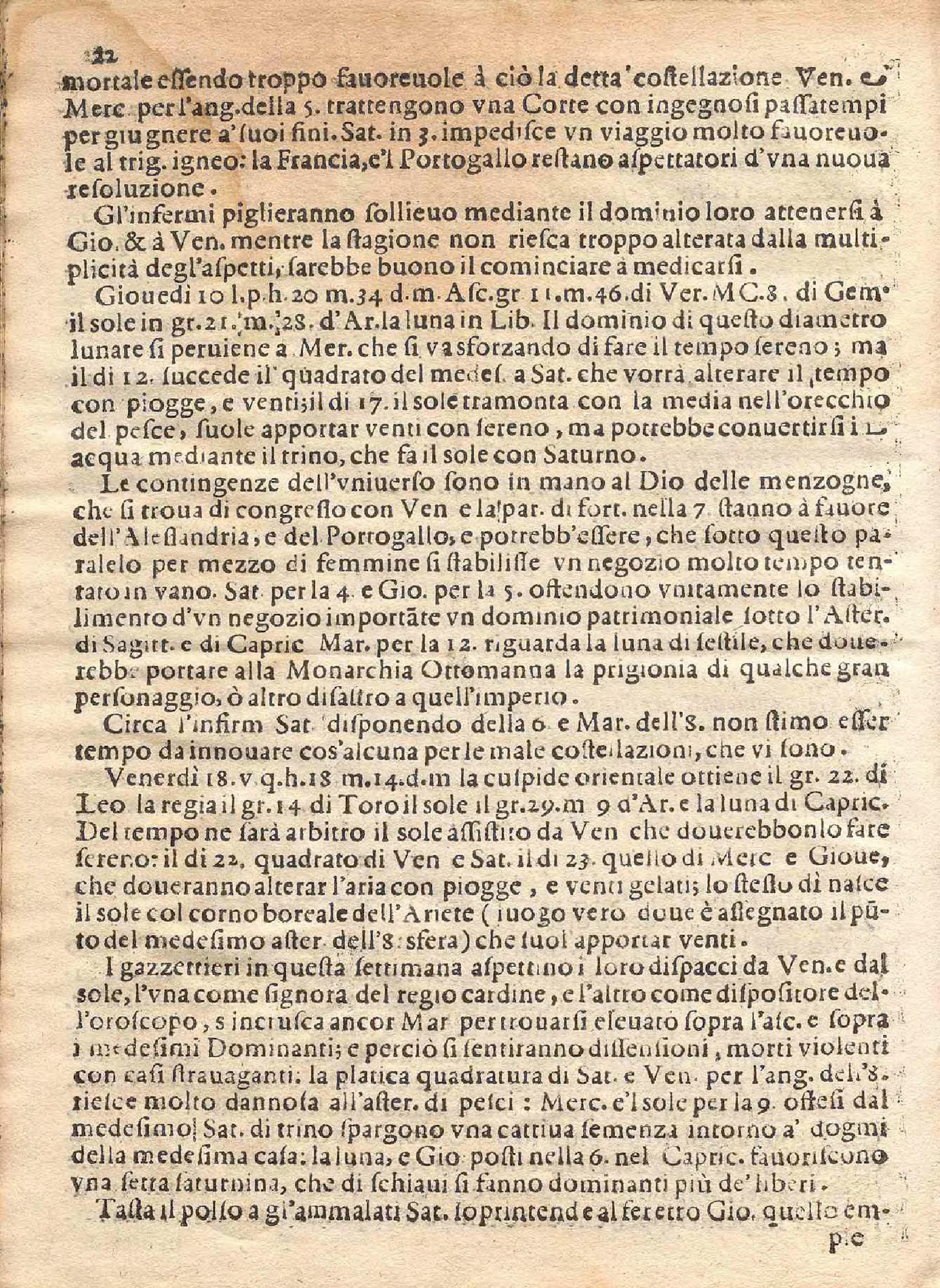 Il Segretario Delle Stelle Per l'Anno Bisestile 1664 : Calcolato Al Merdidiano D'Italia, secondo il Calcolo del dottissimo Ticone ; Con la dife sa dell'Astrologia, & i significati della massima Congiunzione per anni dieci futuri / Da Francesco Barzini Fiorentino ; All'Illvstriss. S. E. Padrone Colendiss. Il Sig. Marchese Niccolo Bvfalini