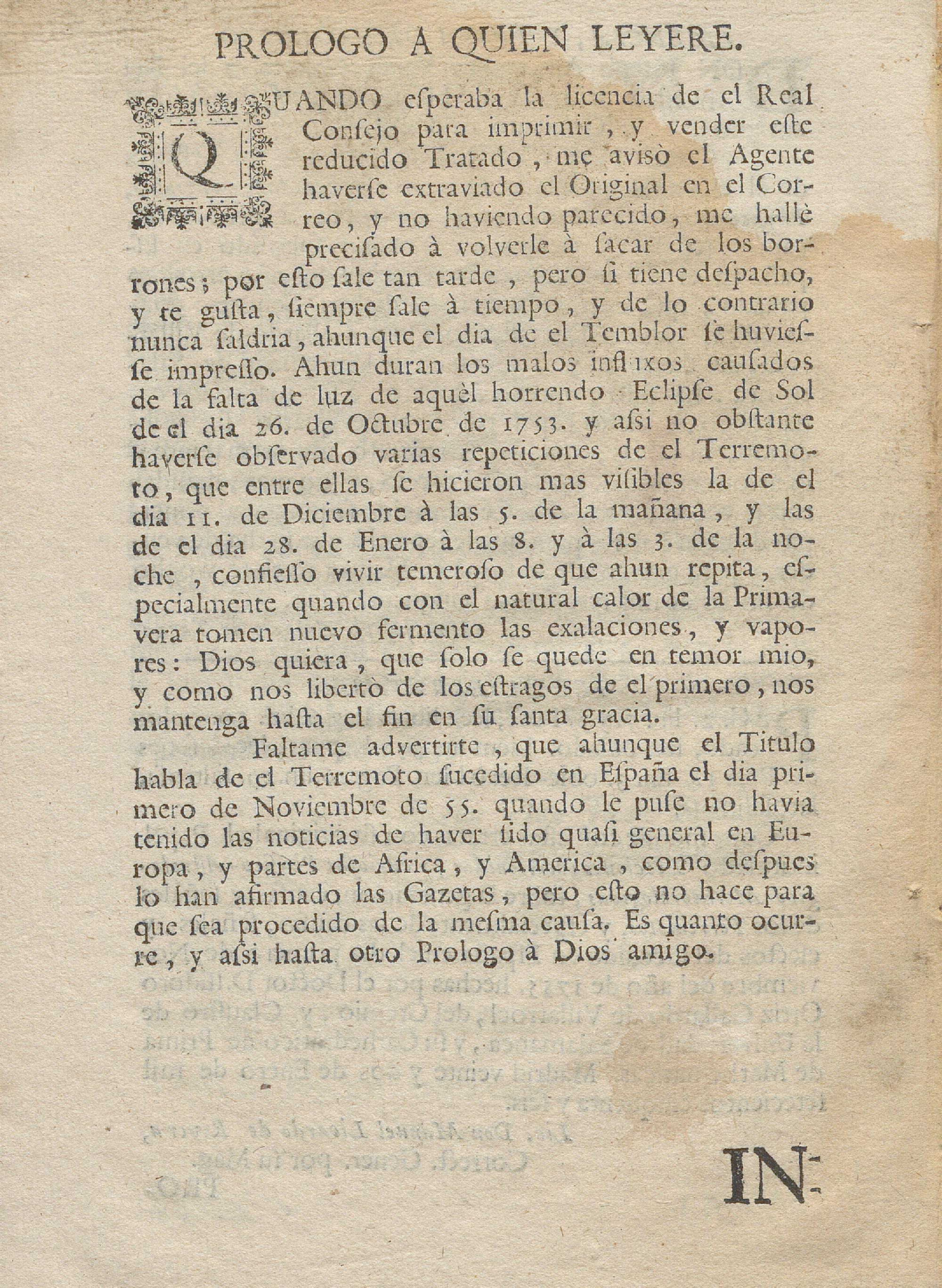 Lecciones Entretenidas Y Curiosas Physico-Astrologico-Metheorologicas Sobre La Generacion, Causas Y Señales De Los Terremotos Y Especialmente De Las Causas, señales y varios efectos del sucedido en España, en el día primero de Noviembre del año pasado de 1775 : Dedicadas Al Señor D. Diego De Torres Villarroel, Del Gremio, Y Claustro De Esta Universidad de Salamanca, y su Cathedratico de Prima de Mathematicas Jubilado por el Rei nuestro Señor / Hechas Por Su Sobrino El Doctor D. Isidoro Ortiz Gallardo de Villarroel, del mismo Gremio, y Claustro, y actual Cathedratico en la misma de Mathematicas