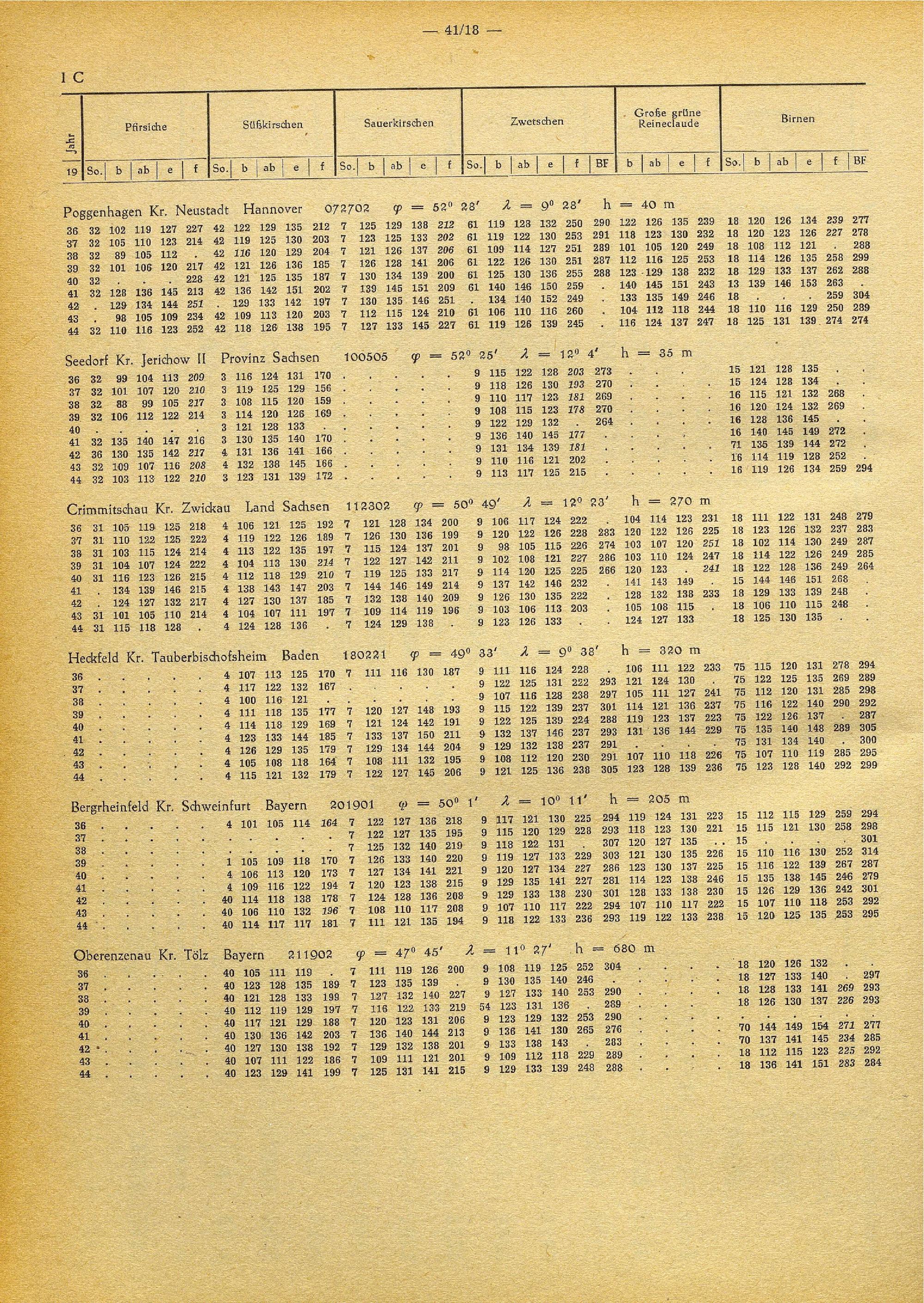 Beiträge zur Phänologie Deutschlands : II, Tabellen phänologischer Einzelwerte von etwa 500 Stationen der Jahre 1936 - 1944 / von Fritz Schnelle und F. Witterstein