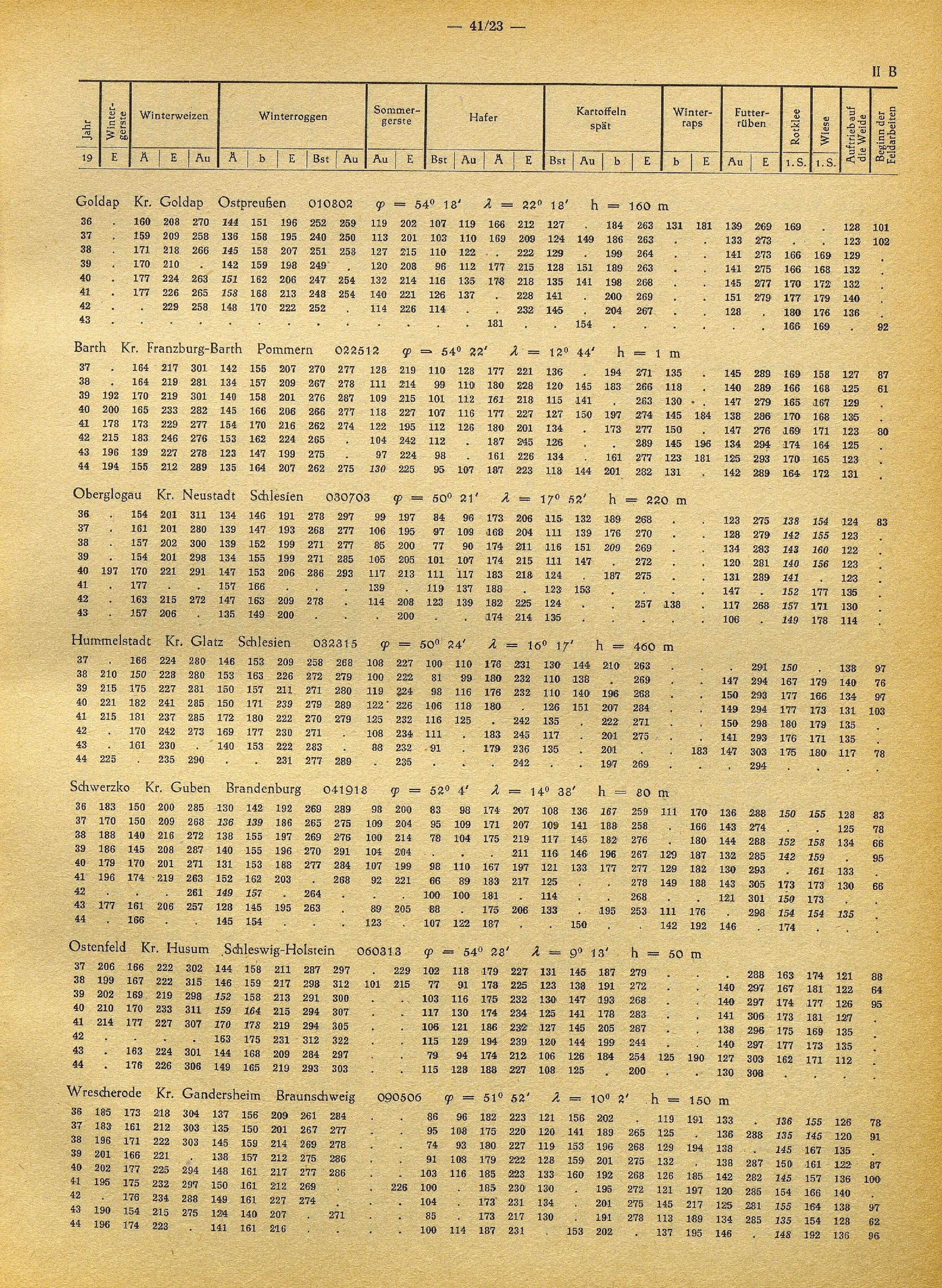 Beiträge zur Phänologie Deutschlands : II, Tabellen phänologischer Einzelwerte von etwa 500 Stationen der Jahre 1936 - 1944 / von Fritz Schnelle und F. Witterstein