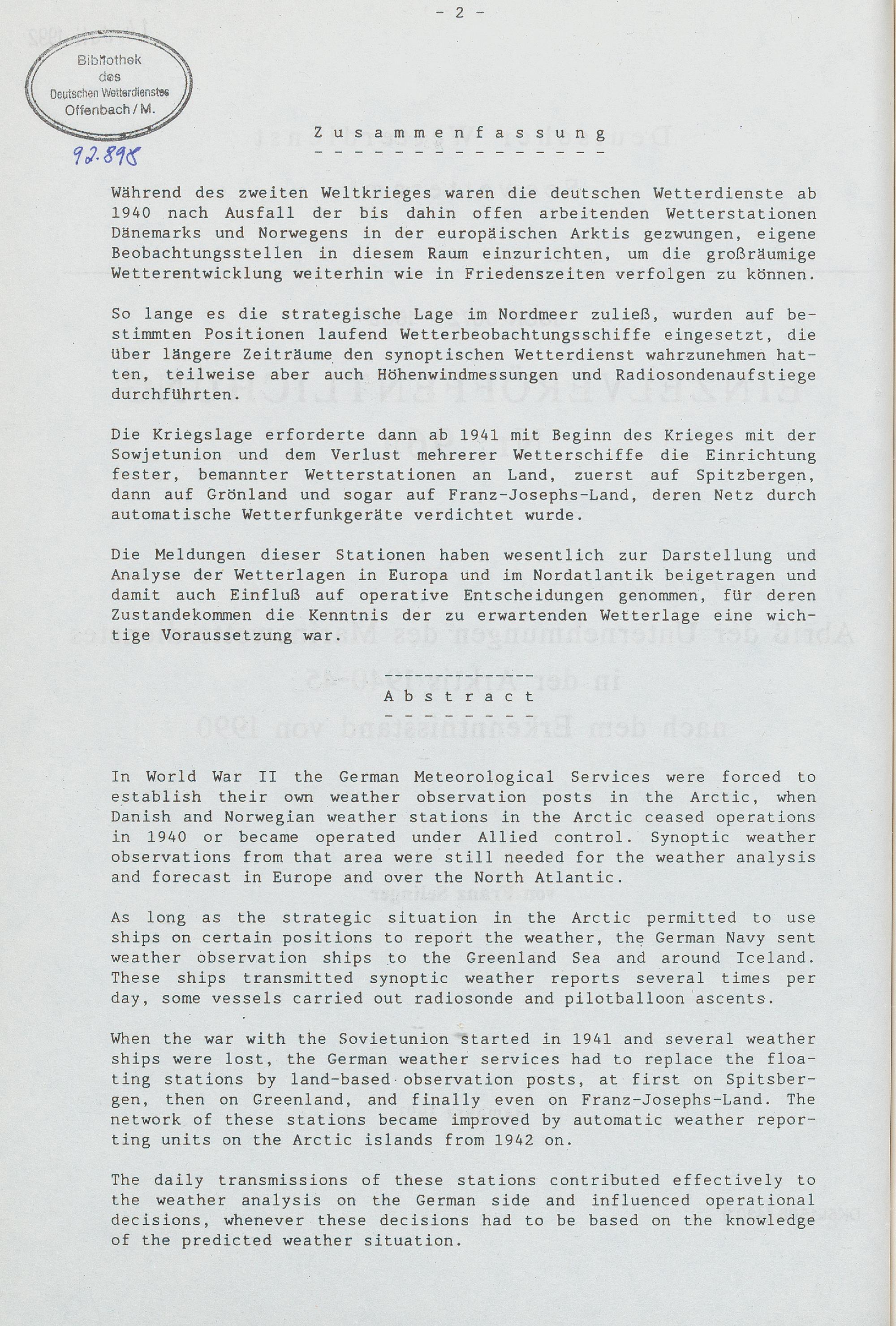 Abriß der Unternehmungen des Marinewetterdienstes in der Arktis 1940 - 45 nach dem...