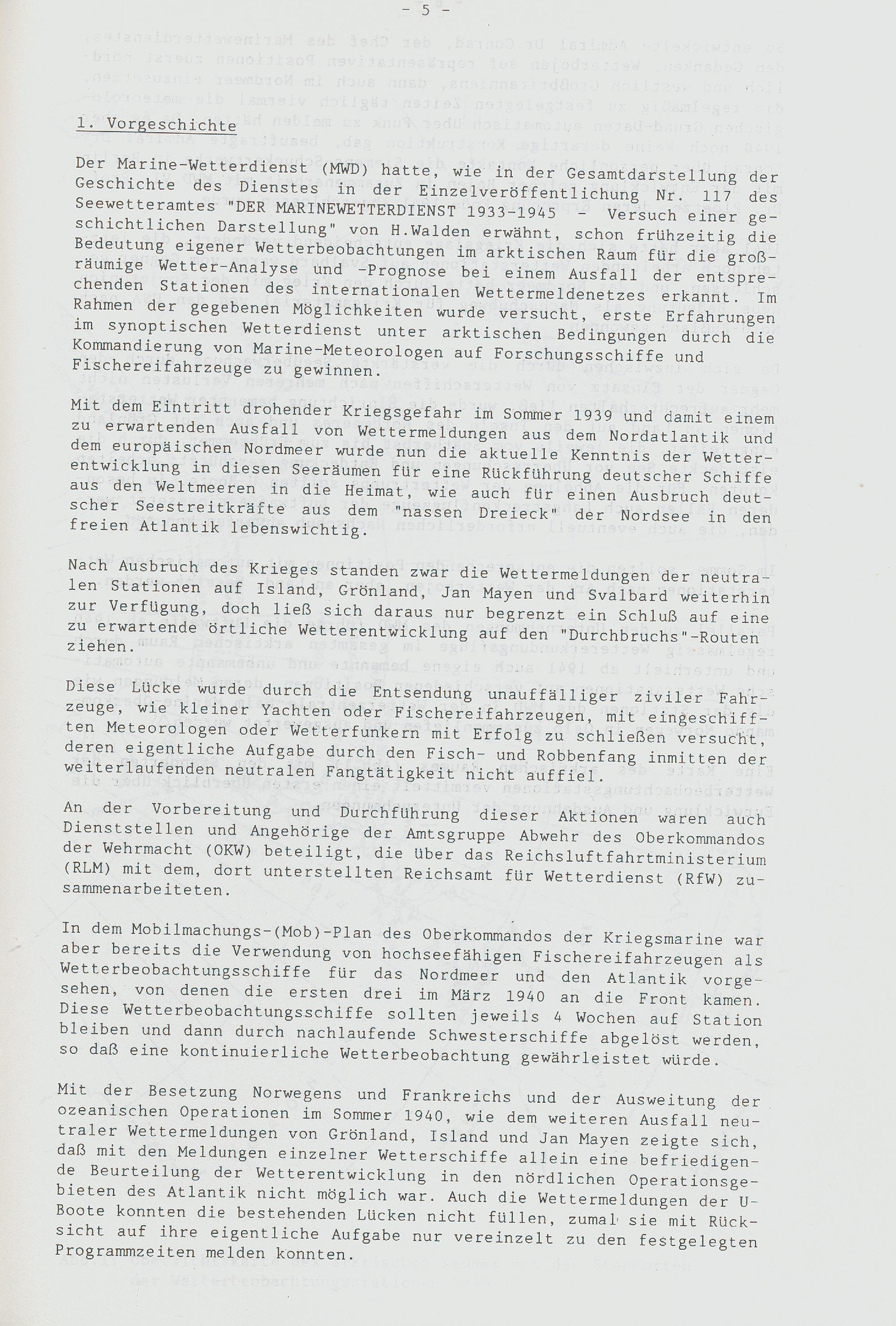 Abriß der Unternehmungen des Marinewetterdienstes in der Arktis 1940 - 45 nach dem...