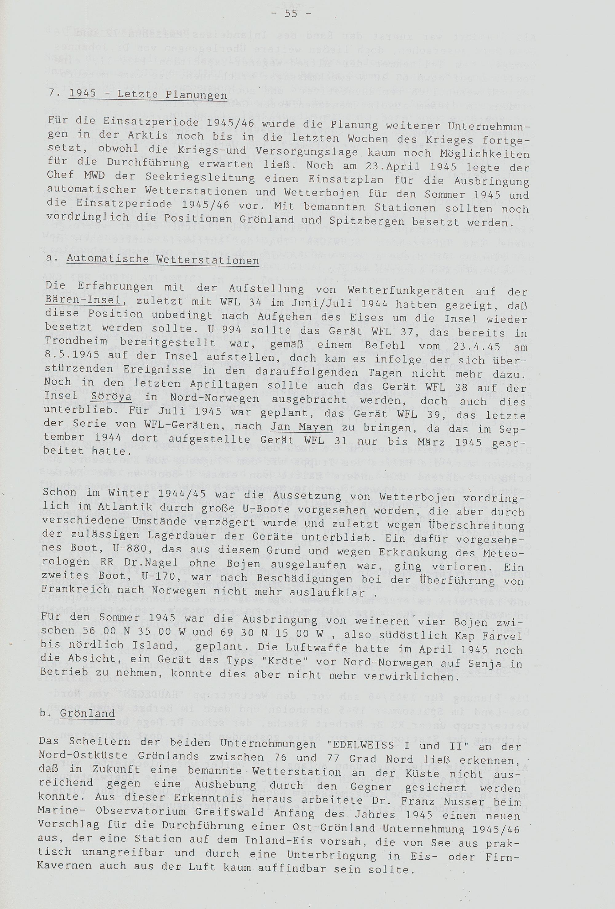 Abriß der Unternehmungen des Marinewetterdienstes in der Arktis 1940 - 45 nach dem...