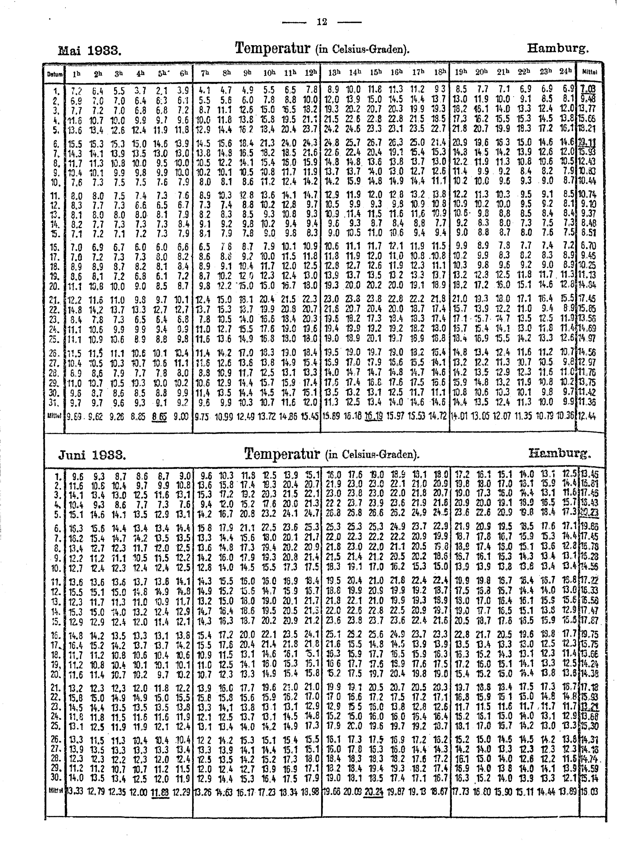 Zusätzliche Beobachtungen der Station Hamburg des Meteorologischen Weltnetzes während des Zweiten Internationalen Polarjahres : (1. August 1932 bis 31. August 1933) / Deutsche Seewarte