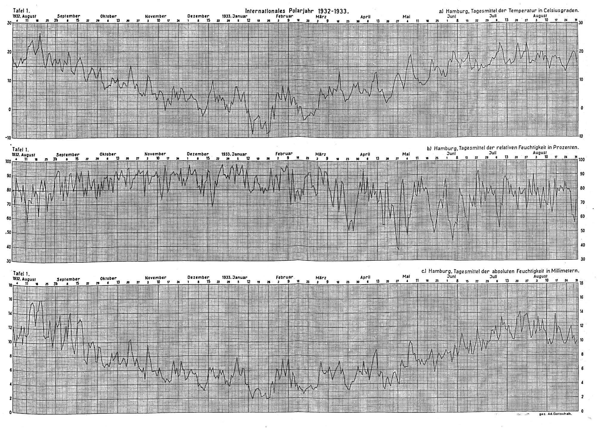Zusätzliche Beobachtungen der Station Hamburg des Meteorologischen Weltnetzes während des Zweiten Internationalen Polarjahres : (1. August 1932 bis 31. August 1933) / Deutsche Seewarte