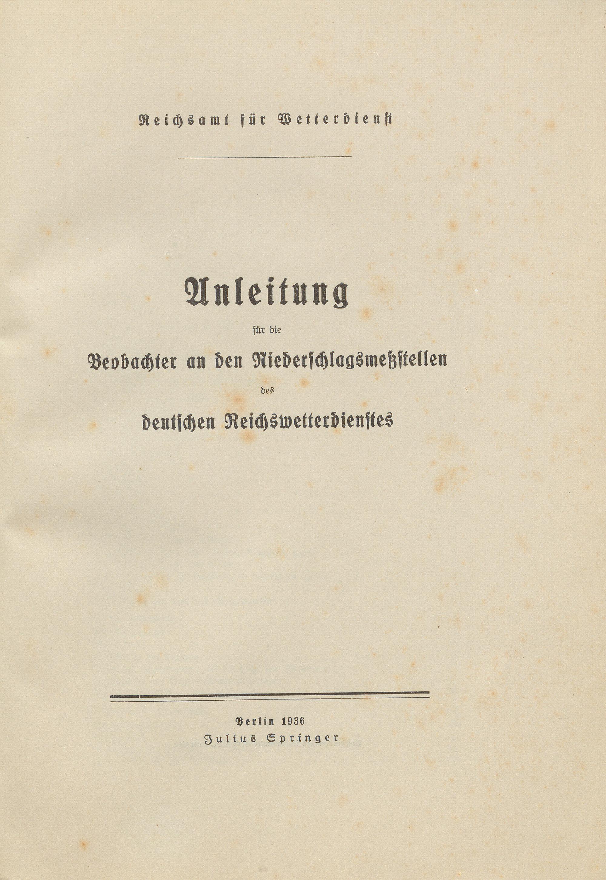 Anleitung für die Beobachter an den Niederschlagsmeßstellen des deutschen Reichswetterdienstes