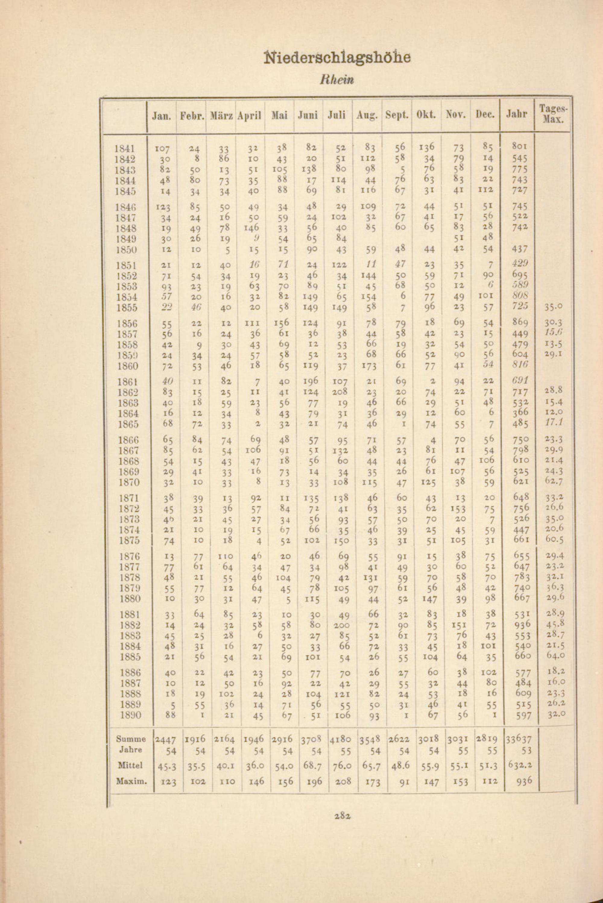 Größte tägliche Niederschlagshöhe in Millimetern
