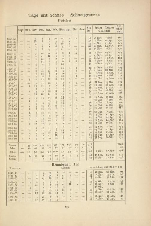 Zahl der Tage mit Schnee, Schneegrenzen
