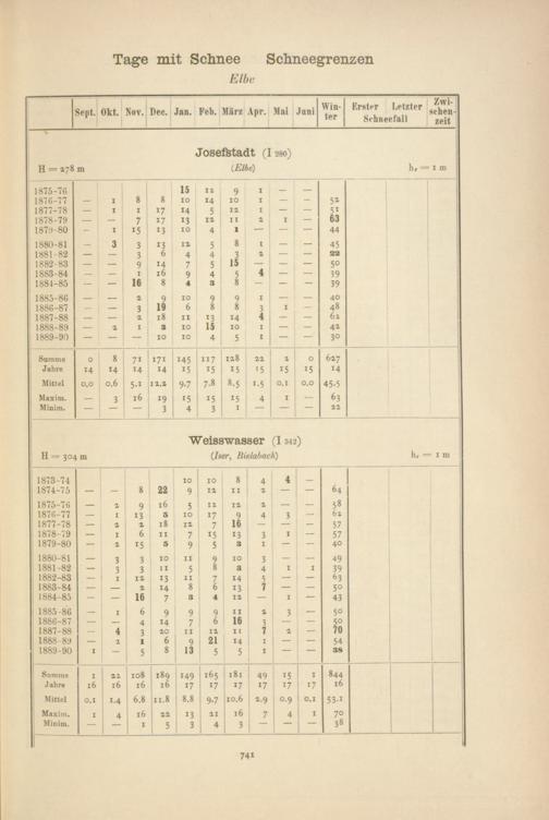 Zahl der Tage mit Schnee, Schneegrenzen