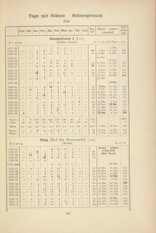 Zahl der Tage mit Schnee, Schneegrenzen