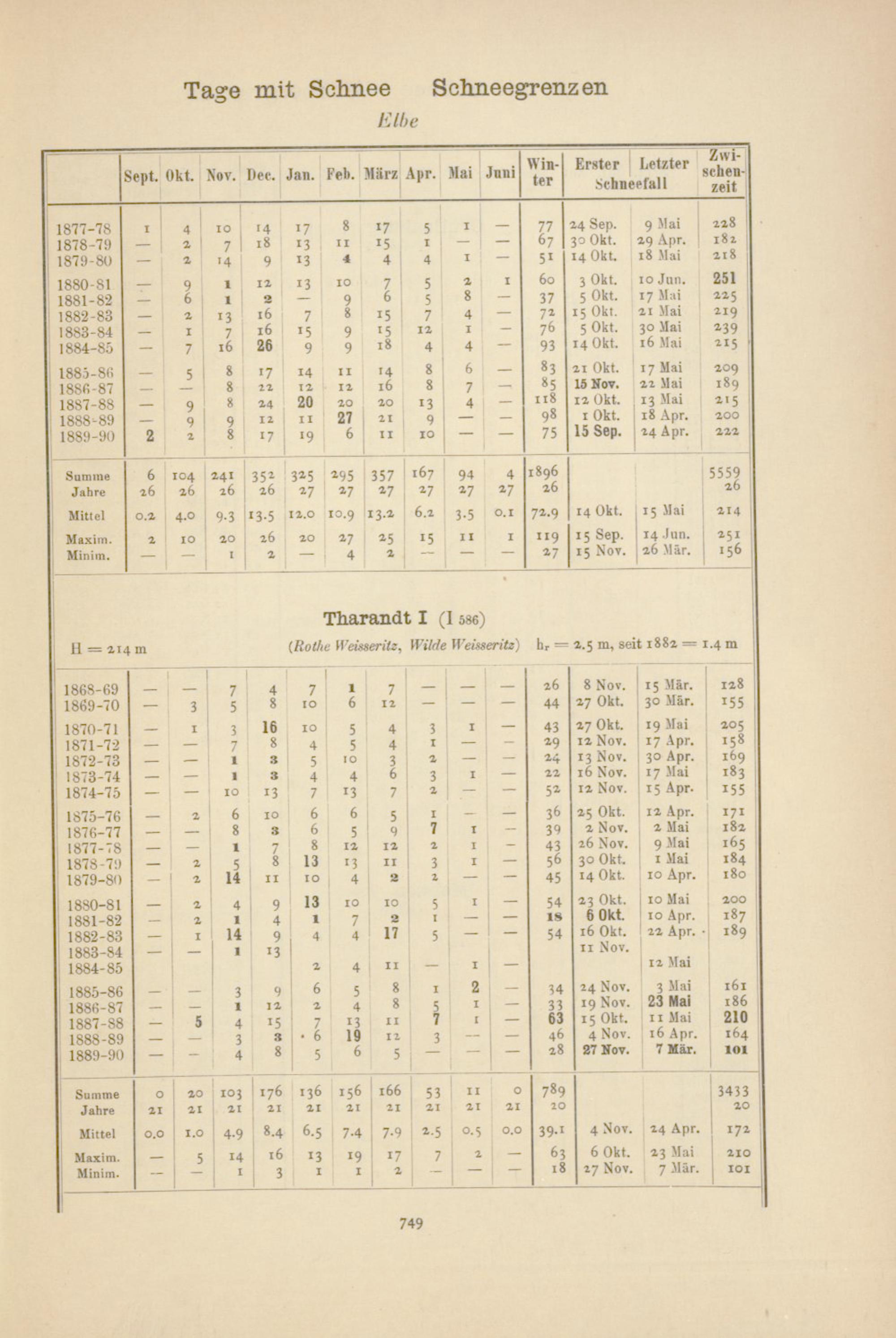 Zahl der Tage mit Schnee, Schneegrenzen