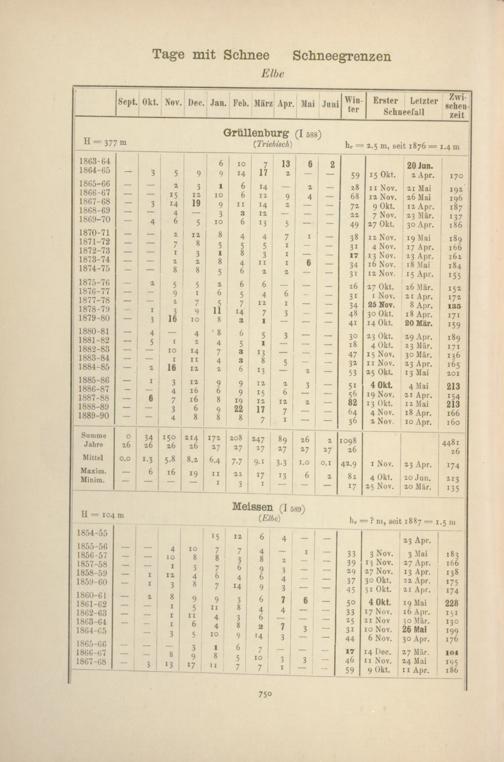 Zahl der Tage mit Schnee, Schneegrenzen