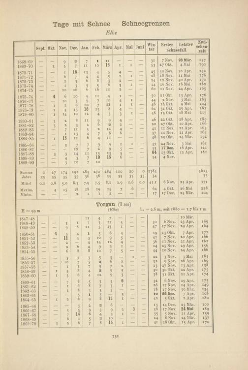 Zahl der Tage mit Schnee, Schneegrenzen