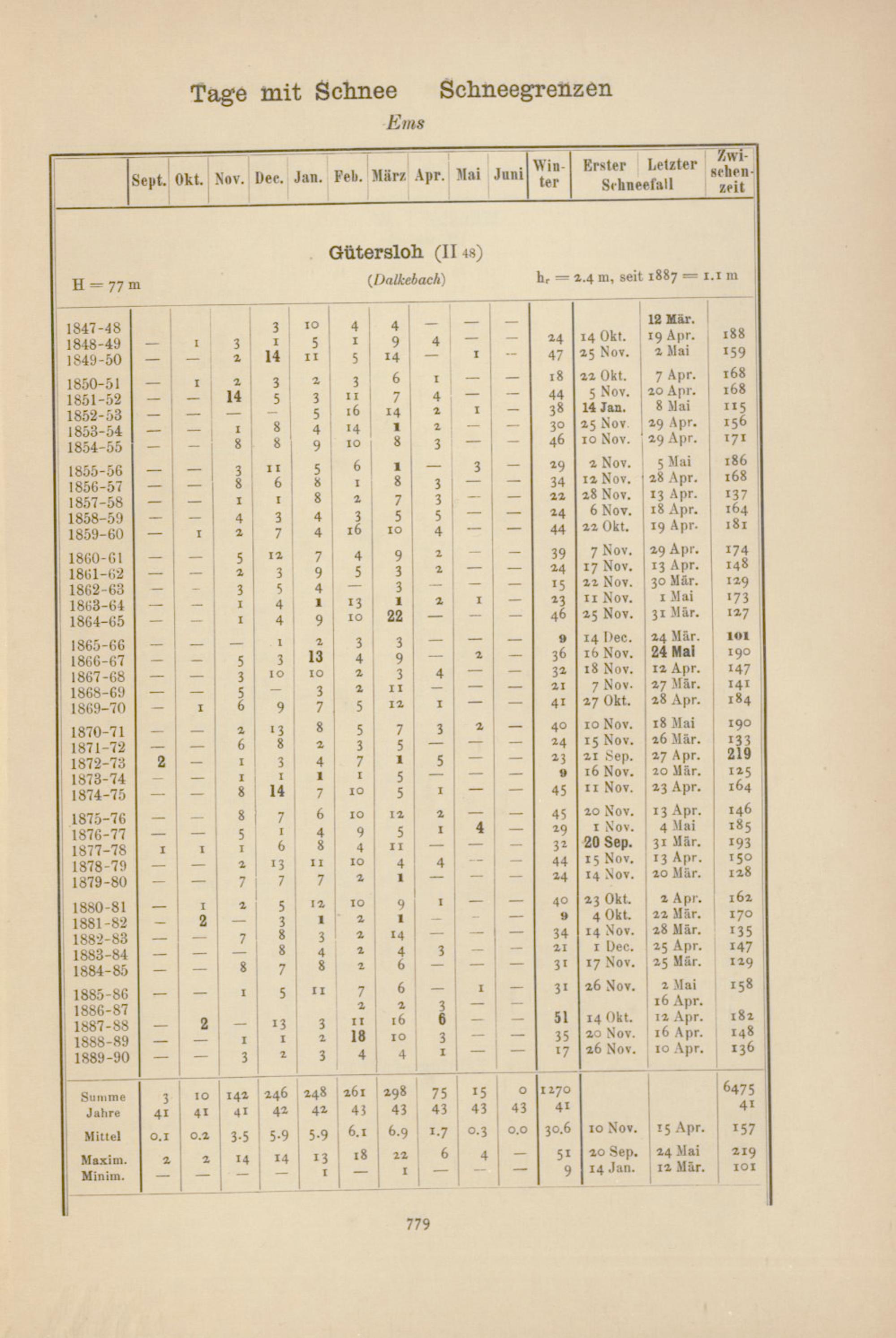 Zahl der Tage mit Schnee, Schneegrenzen