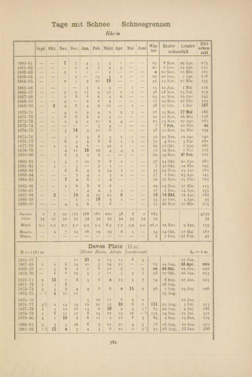 Zahl der Tage mit Schnee, Schneegrenzen