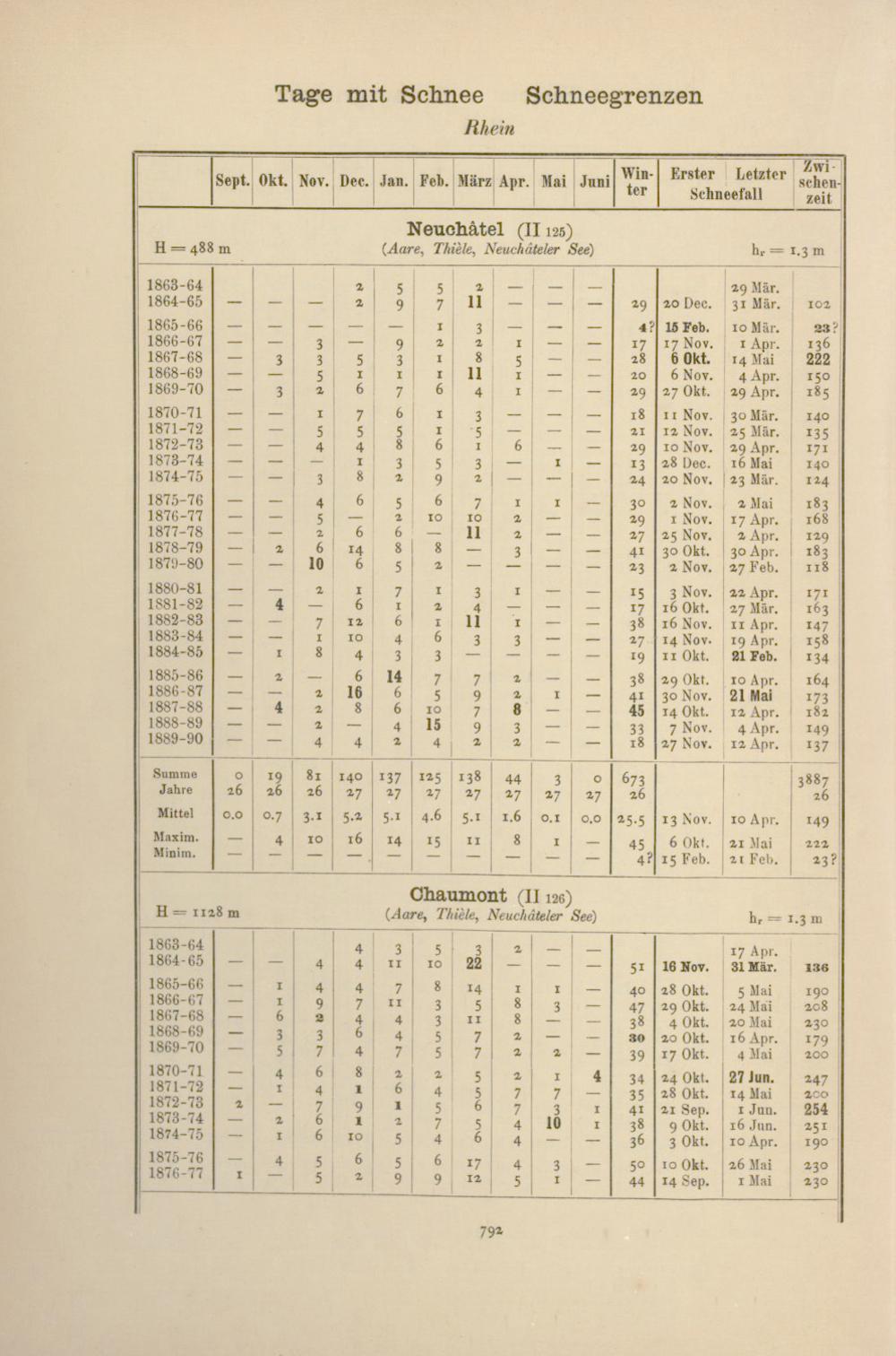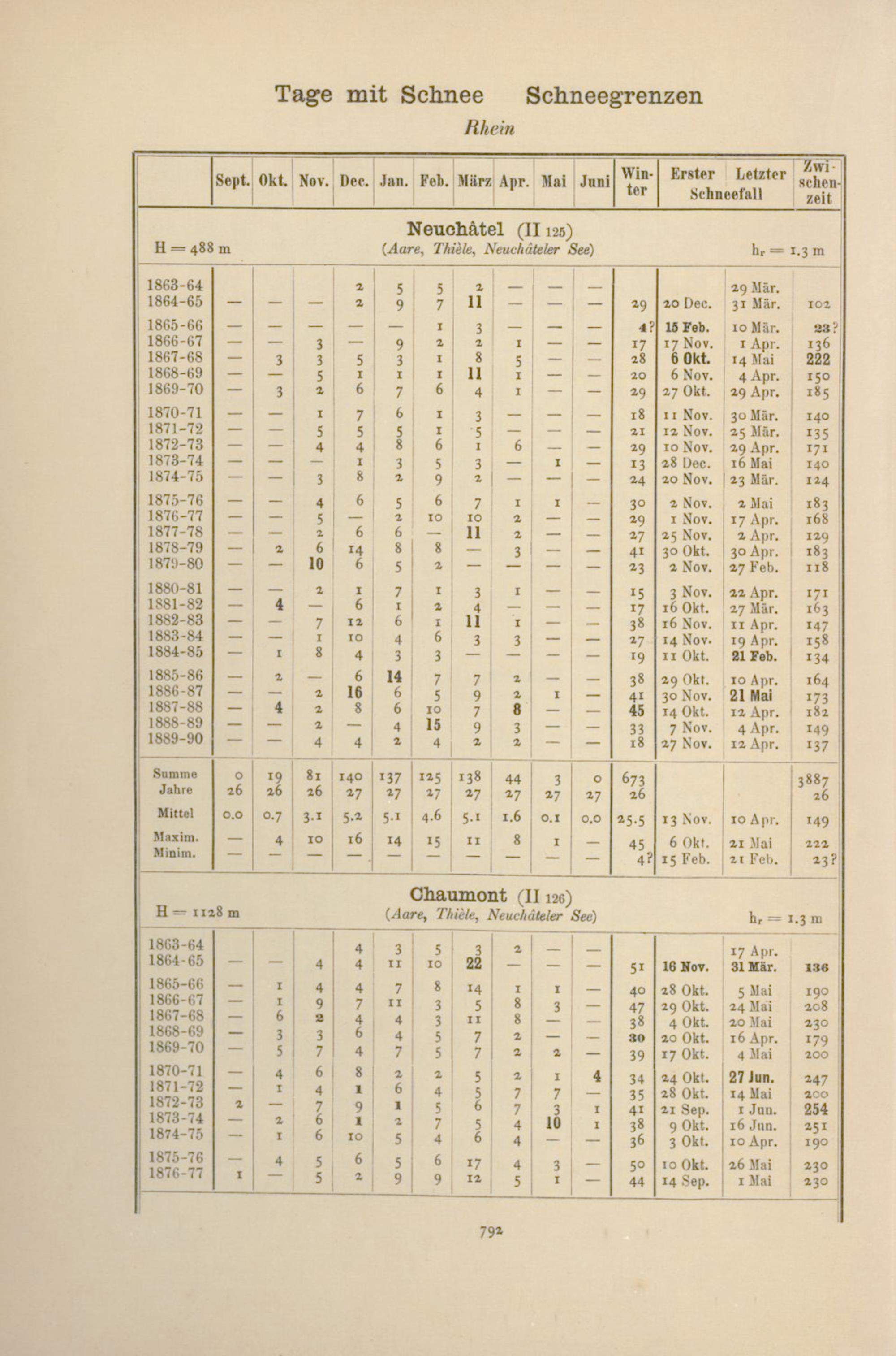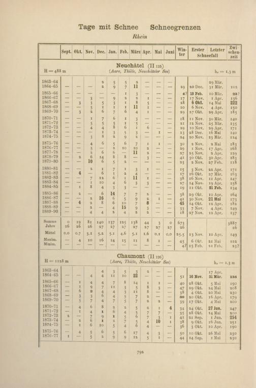 Zahl der Tage mit Schnee, Schneegrenzen