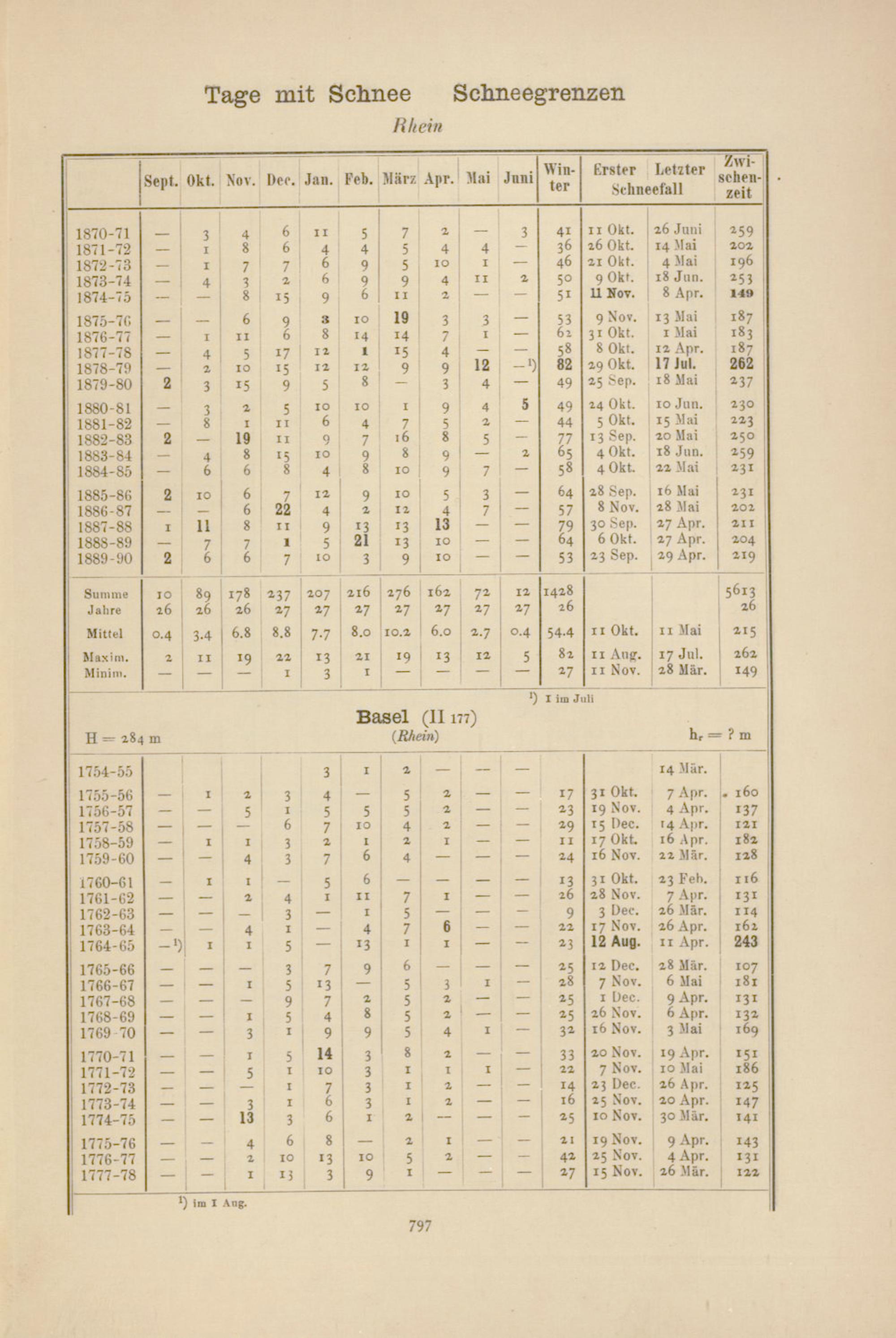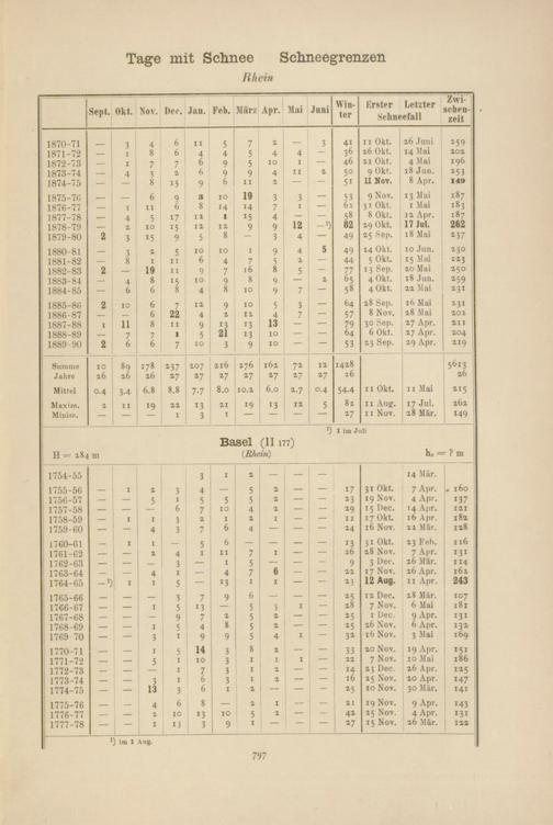 Zahl der Tage mit Schnee, Schneegrenzen