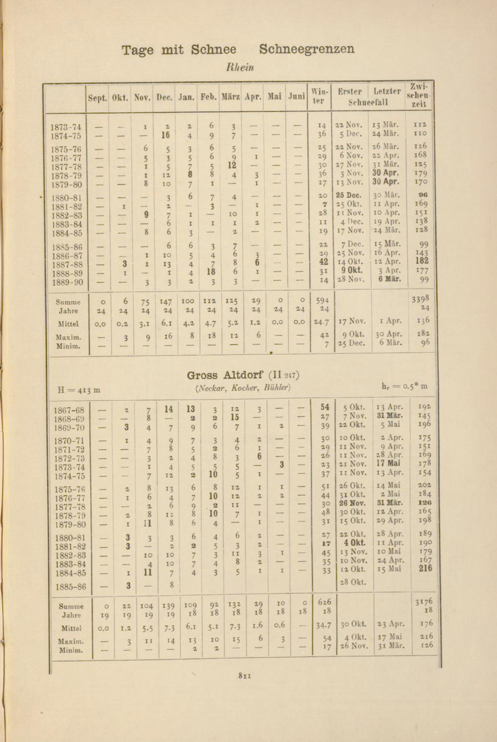 Zahl der Tage mit Schnee, Schneegrenzen