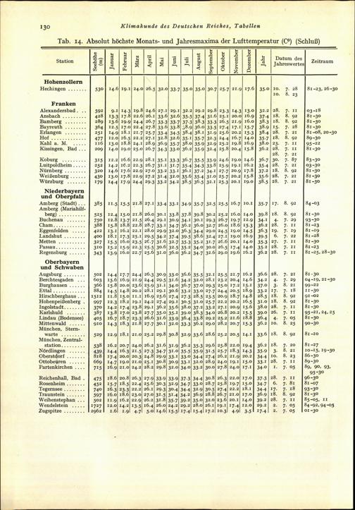 Tab. 14: Absolut höchste Monats- und Jahresmaxima der Lufttemperatur (C°)